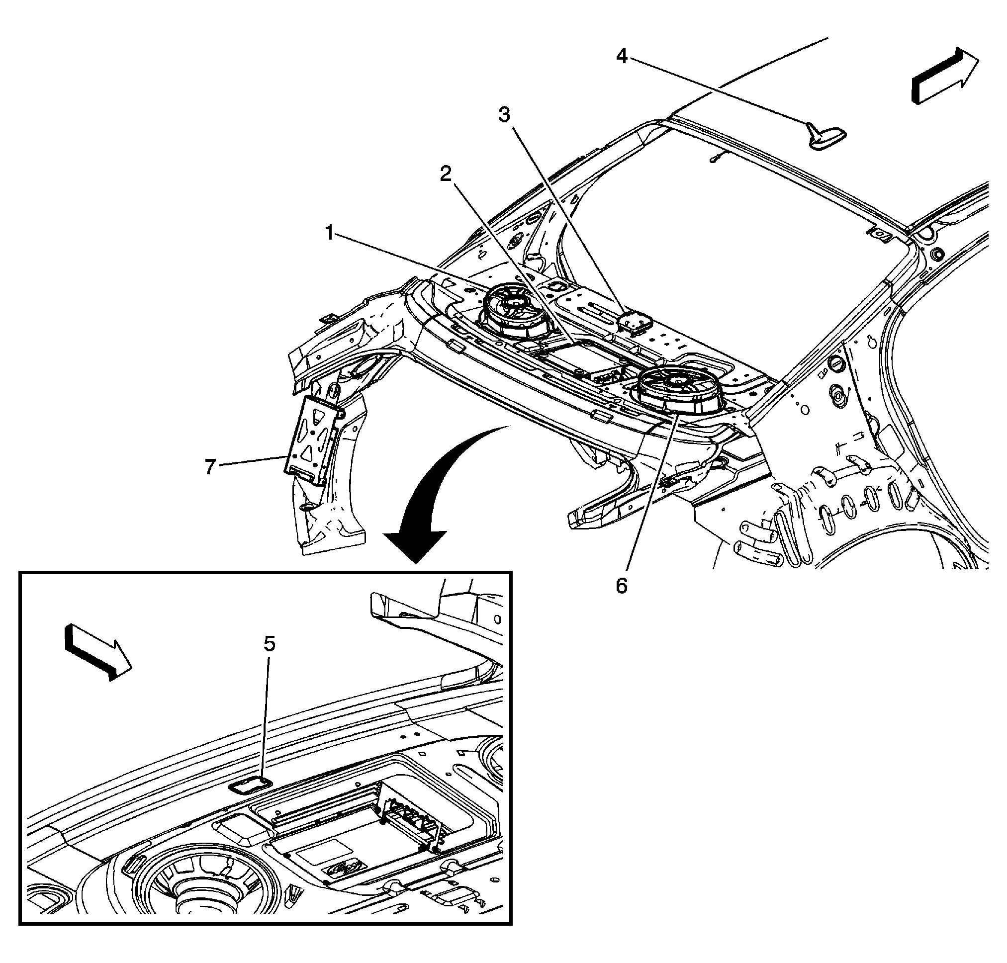 | Electronic Compass Module | Top center of rear package shelf. See Figure. |