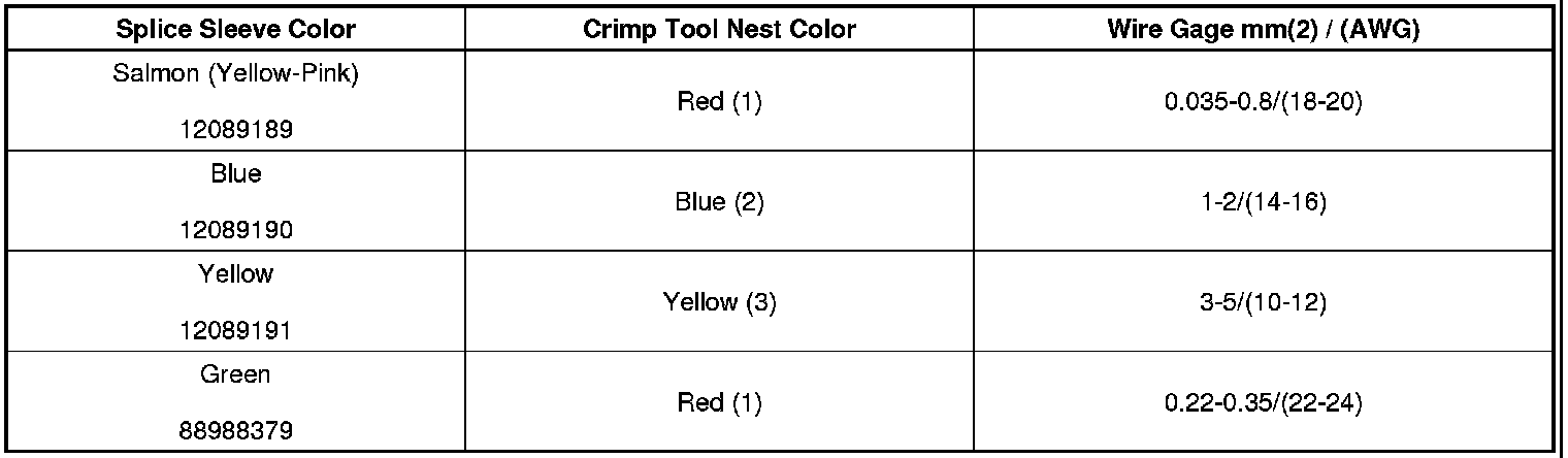 4. Select the proper DuraSeal splice sleeve according to the wire size. Refer to the above table at the beginning of the repair procedure for the color coding of the DuraSeal splice sleeves and the crimp tool nests.