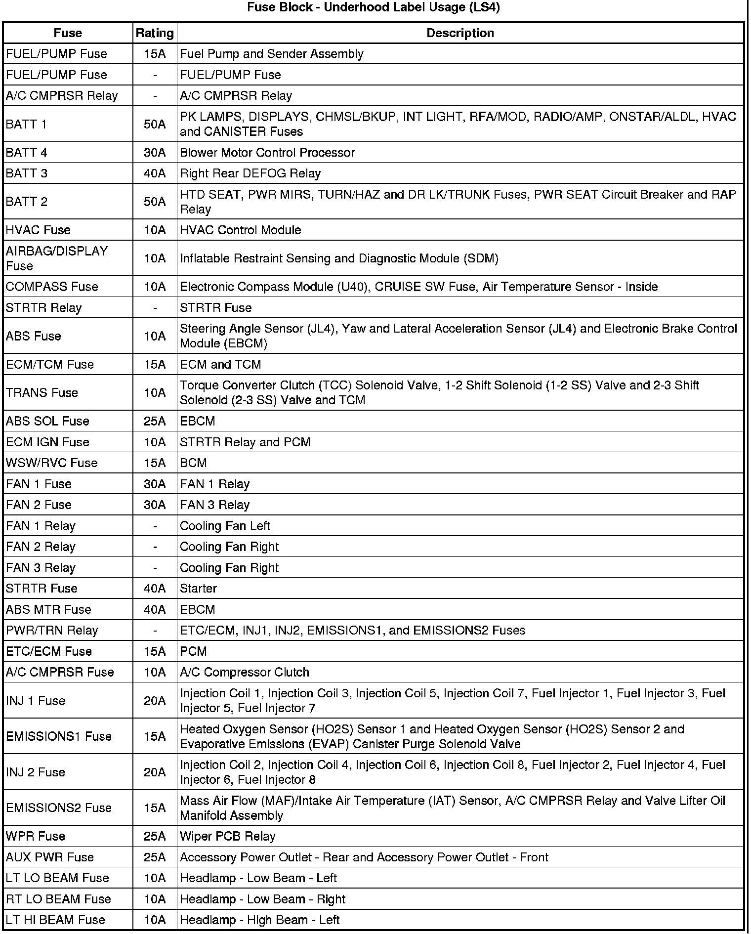 Fuse Block - Underhood - Label (LS4 - 5.3L)