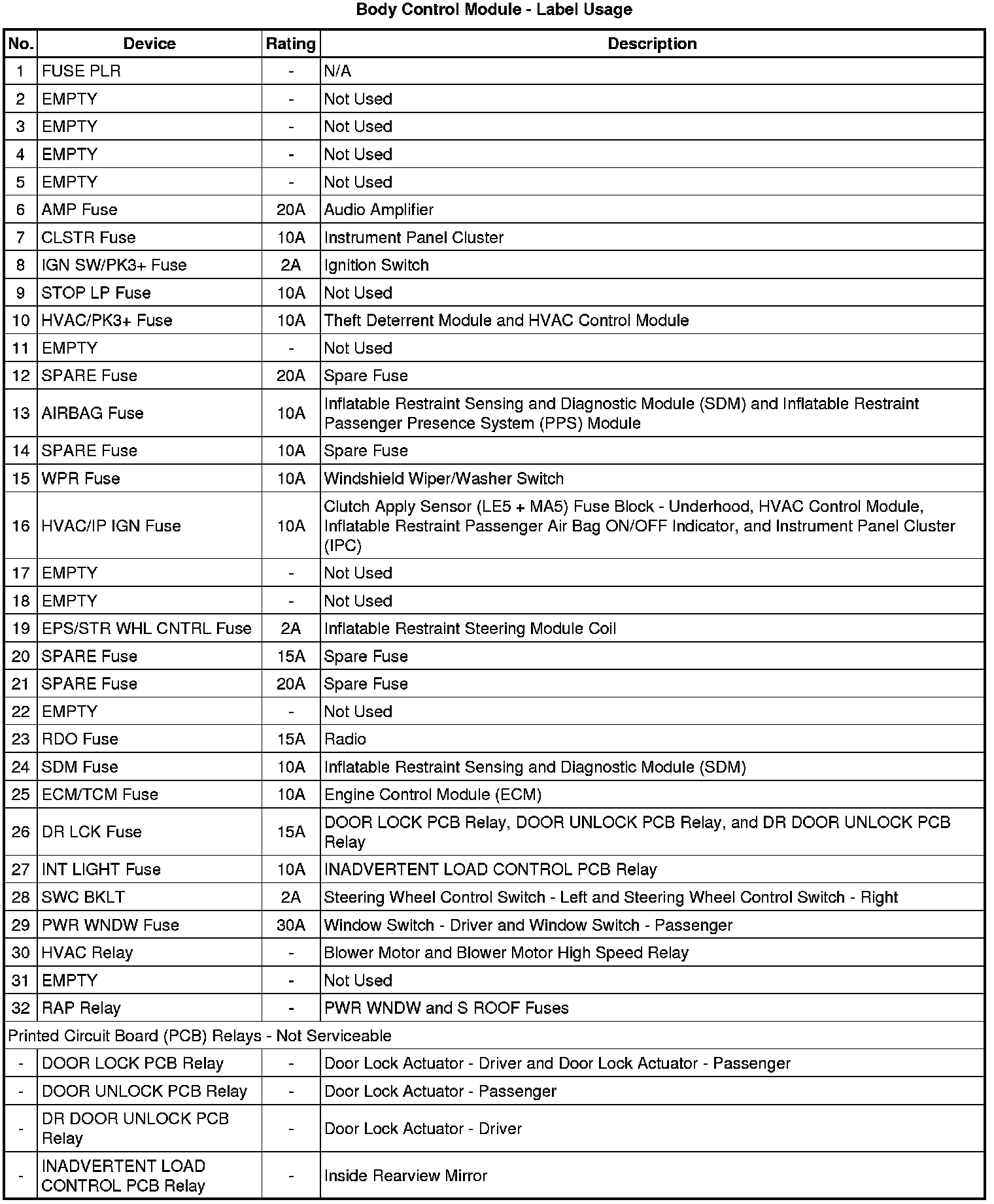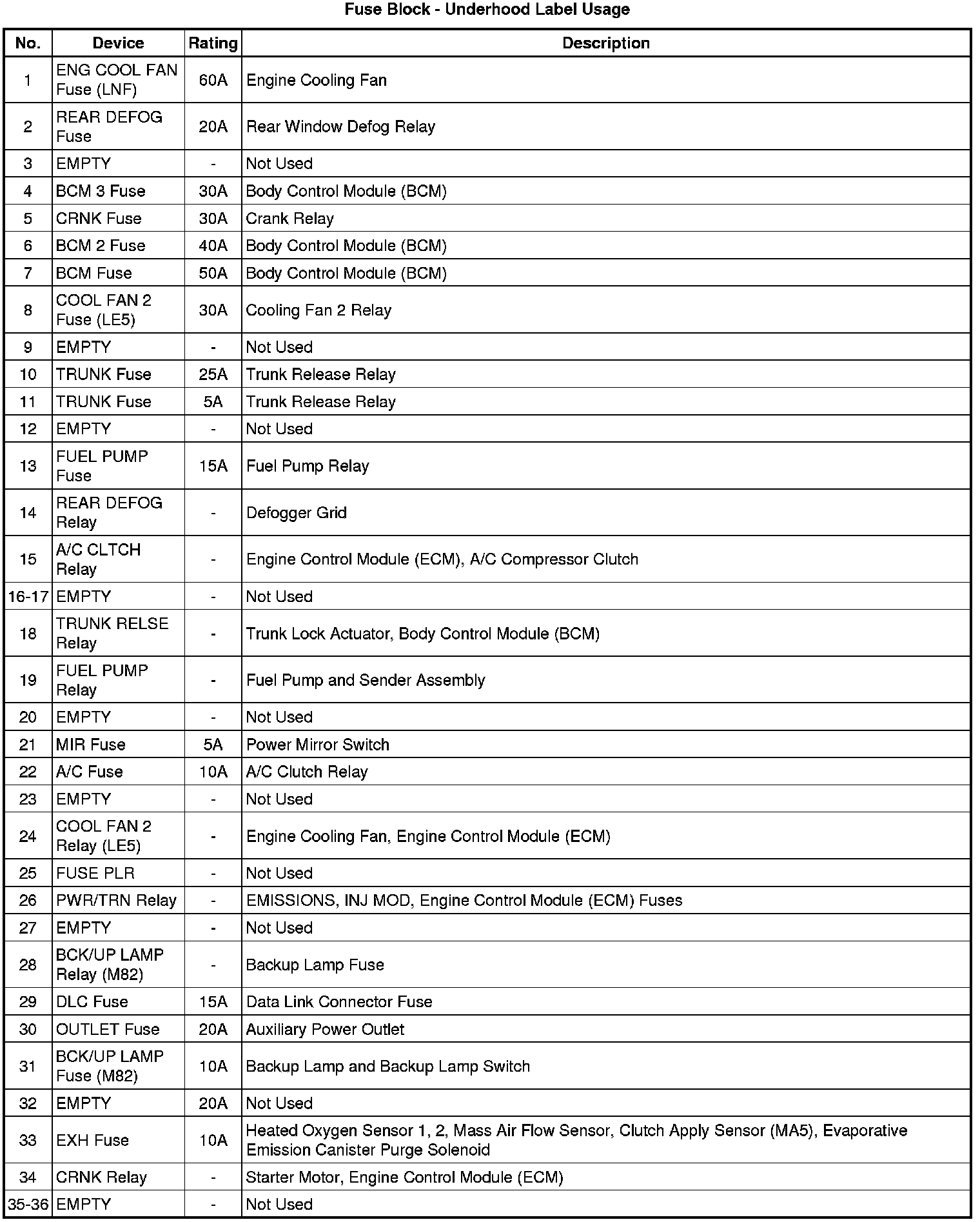 Fuse Block - Underhood Label (LE5 w/MA5)