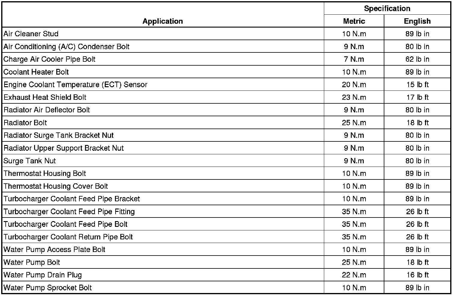 Fastener Tightening Specifications