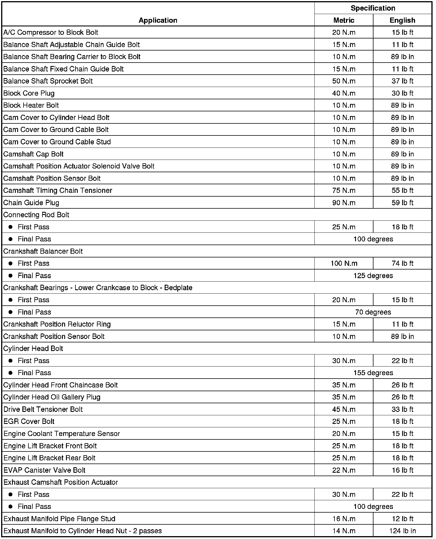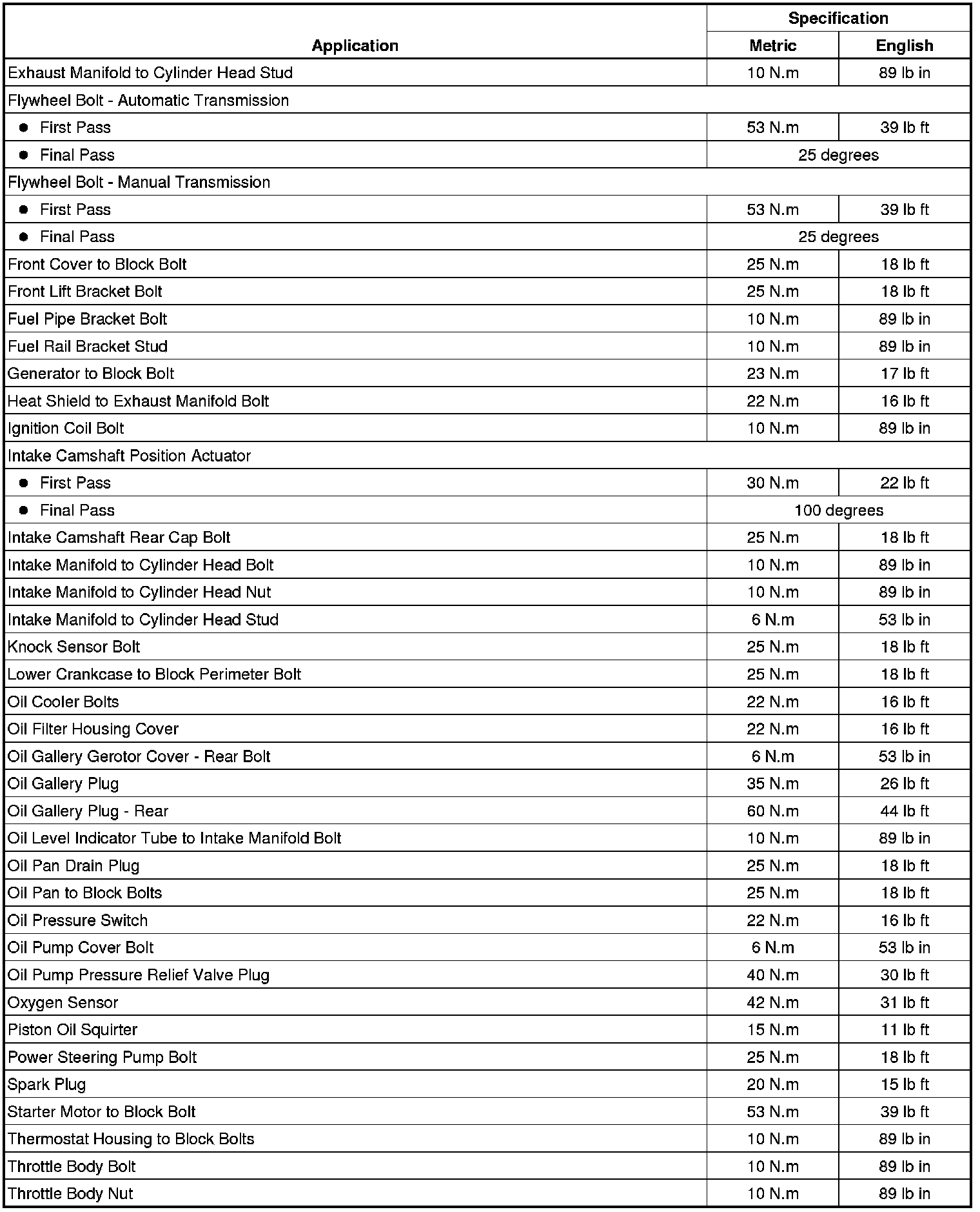 Fastener Tightening Specifications