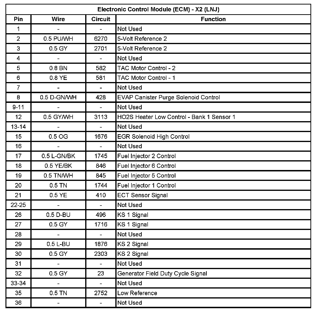 Electronic Control Module (ECM) - X1 (LNJ) (Pin 1 To 37):