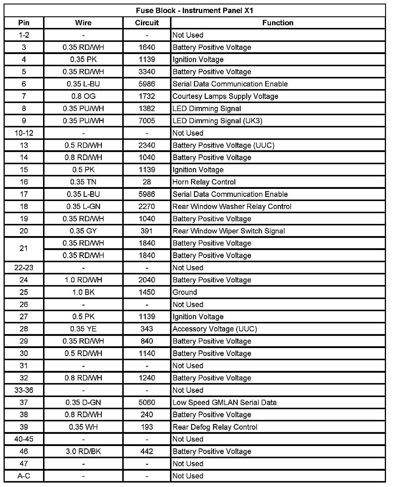 Fuse Block - Instrument Panel X3 (Pin 39 To C):