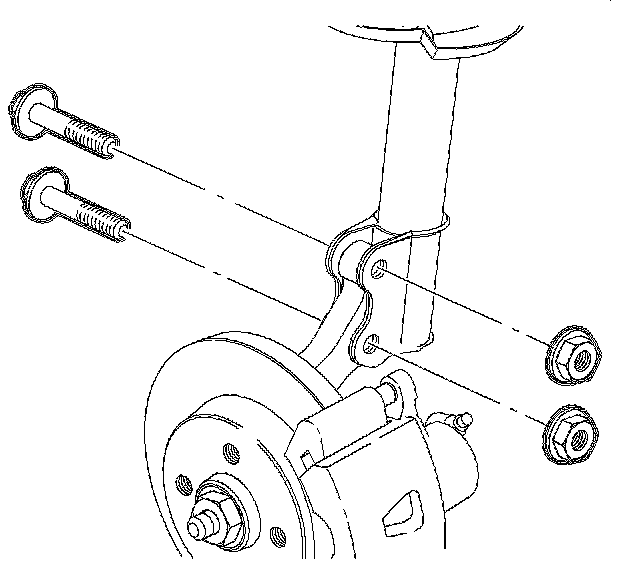 3. Remove the strut to knuckle nuts and bolts. Discard the nuts and bolts.