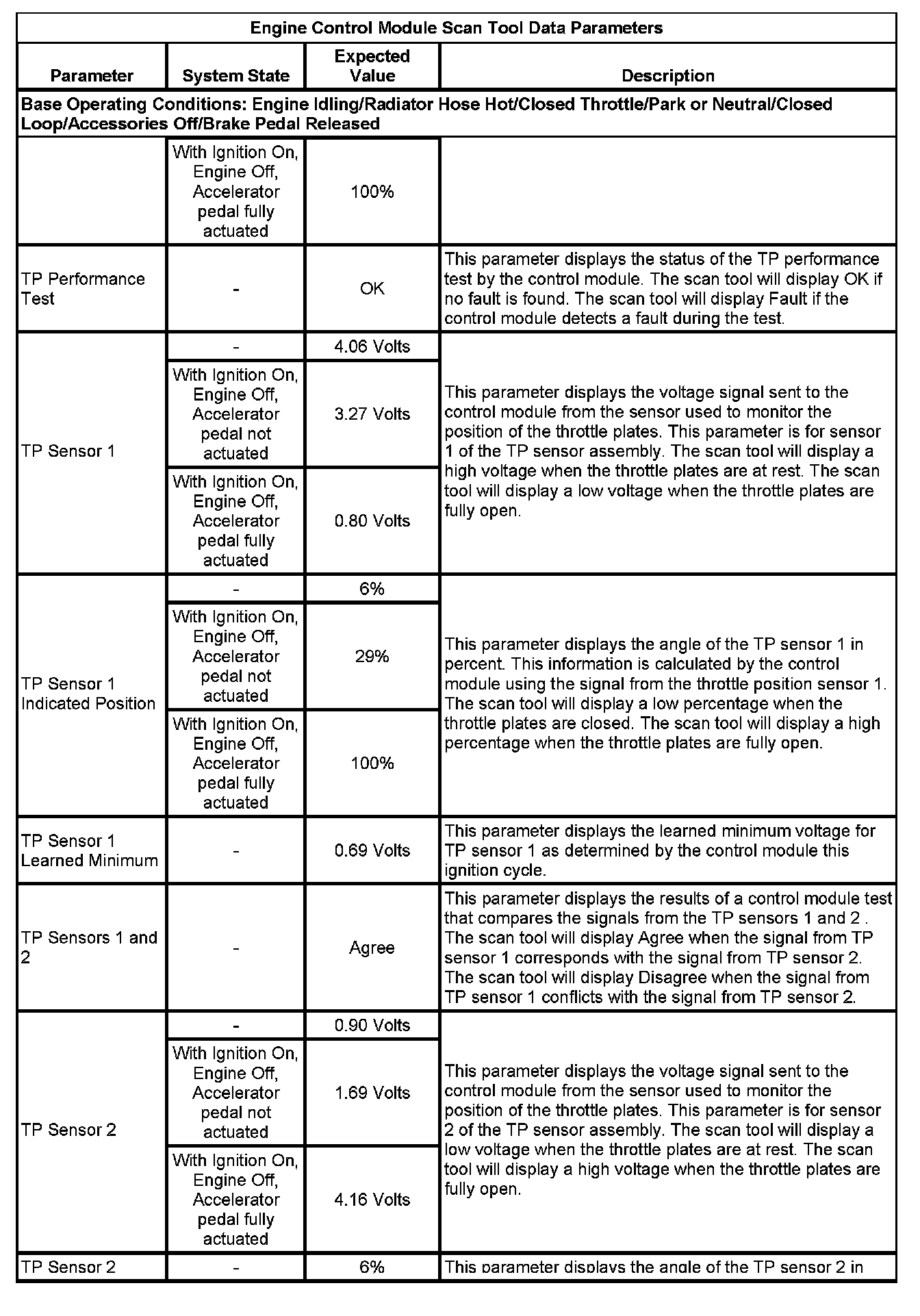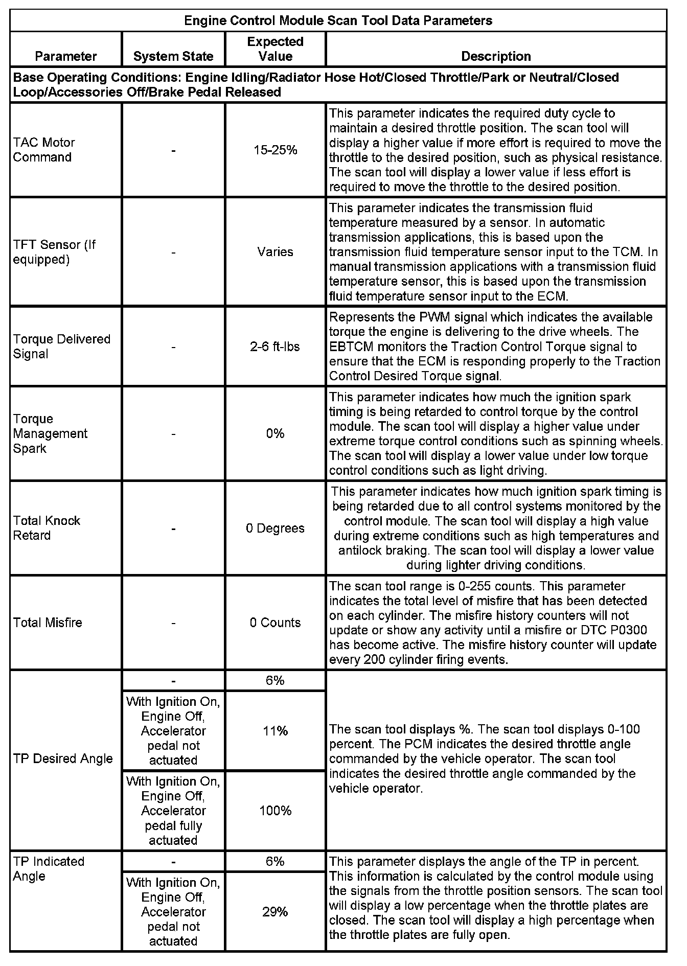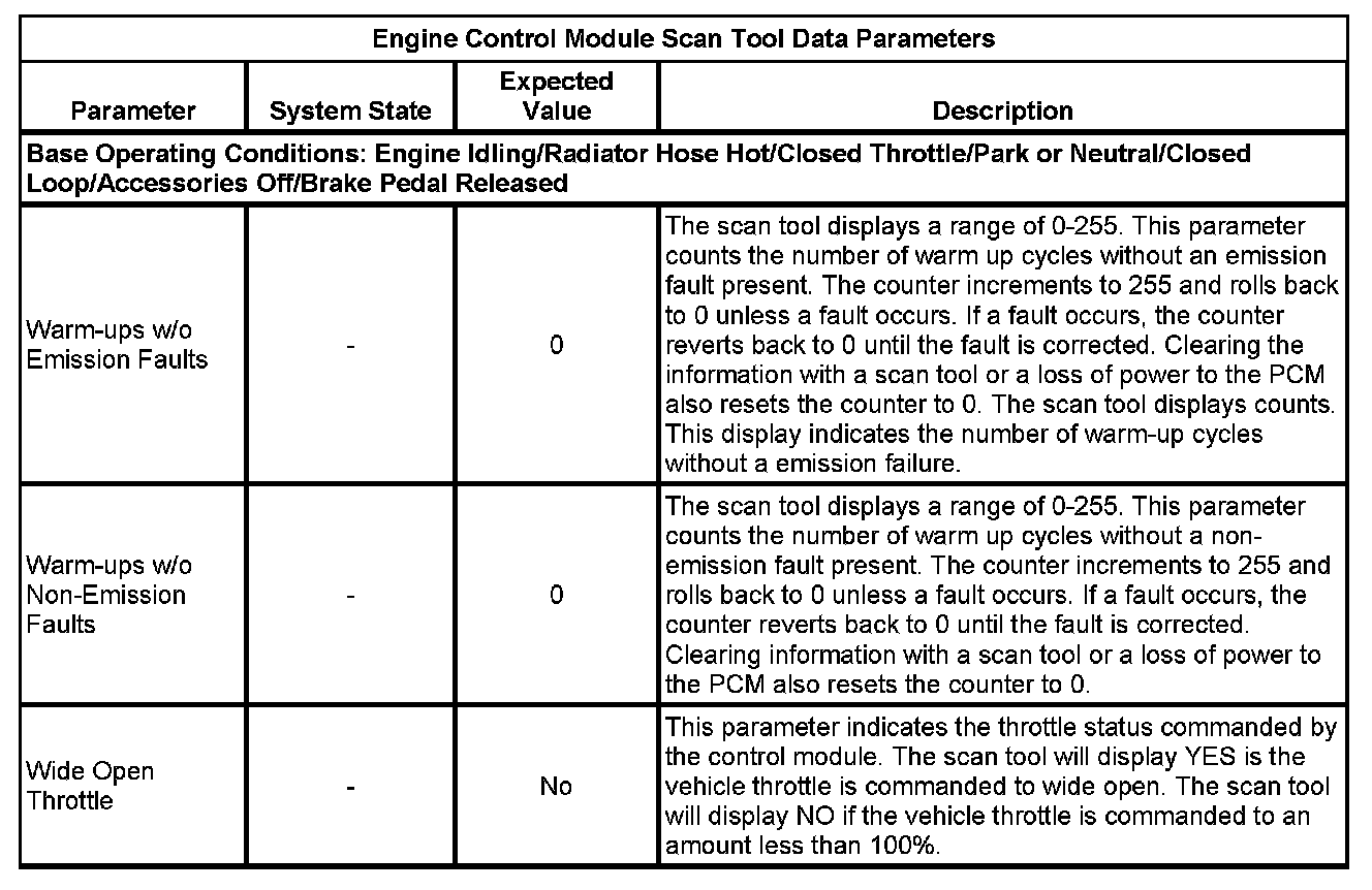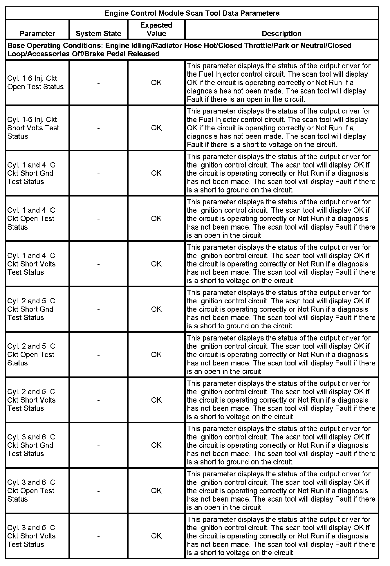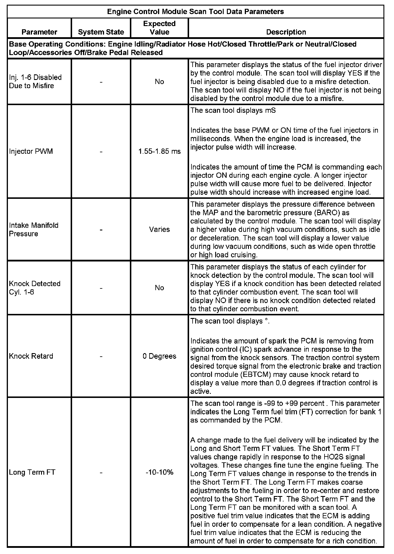 The Engine Control Module Scan Tool Data List contains all engine-related parameters that are available on the scan tool. The list is arranged in alphabetical order. A given parameter may appear in any one of the data lists, and in some cases may appear more than once, or in more than one data list in order to group certain related parameters together.