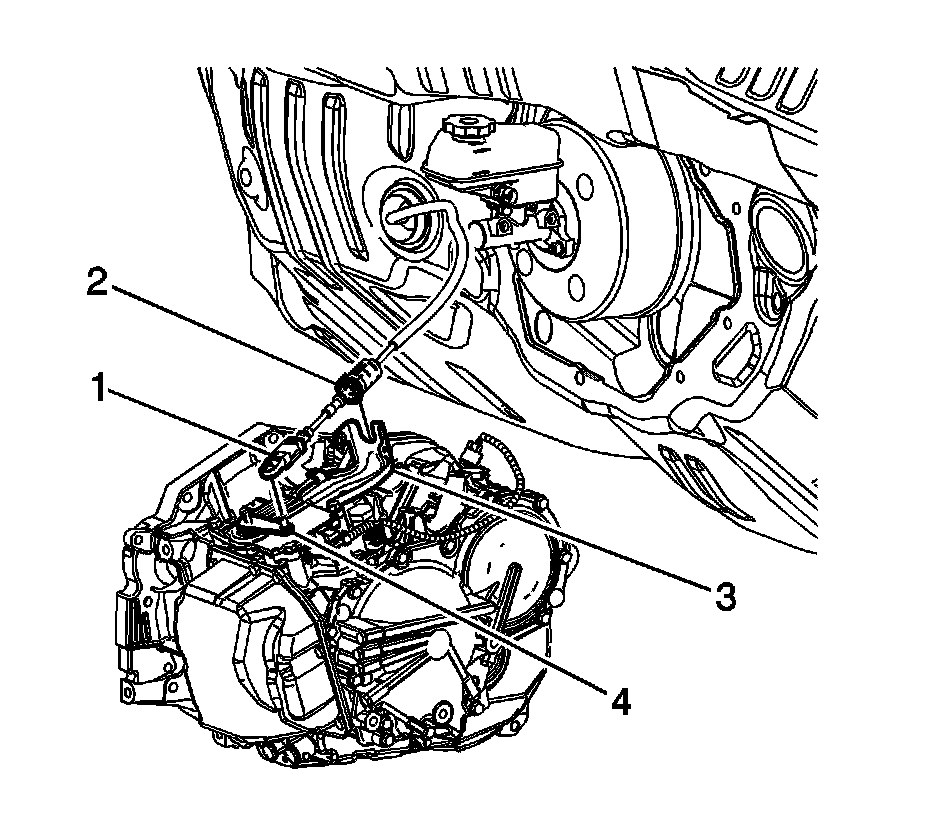 3. Using the J 36346 , disconnect the shift control cable (1) from the transaxle range switch lever (4).