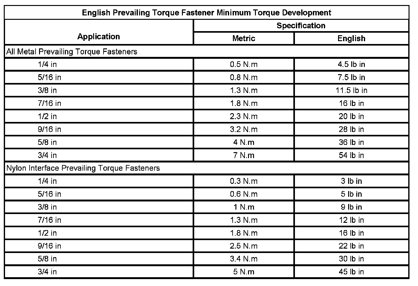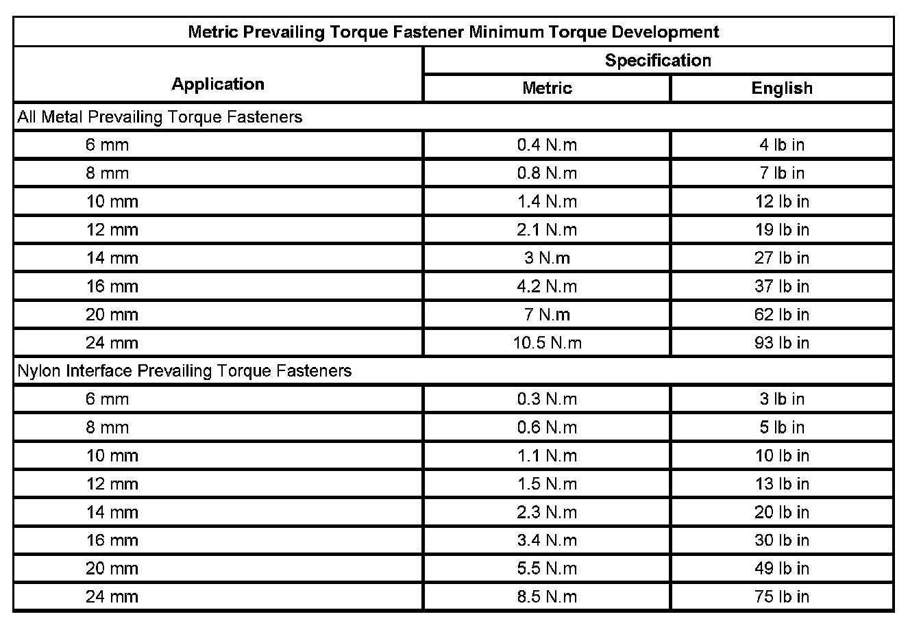 * The fastener develops the specified minimum torque against its counterpart prior to the fastener seating