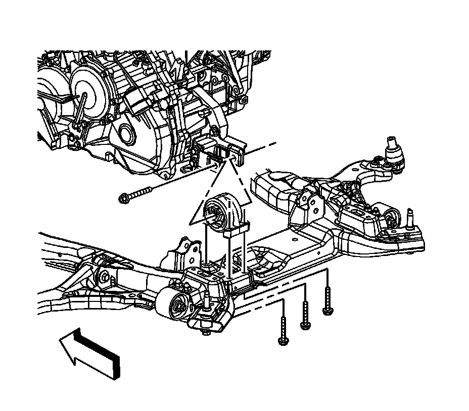 1.Remove the frame-to-body bolts. Discard the bolts.