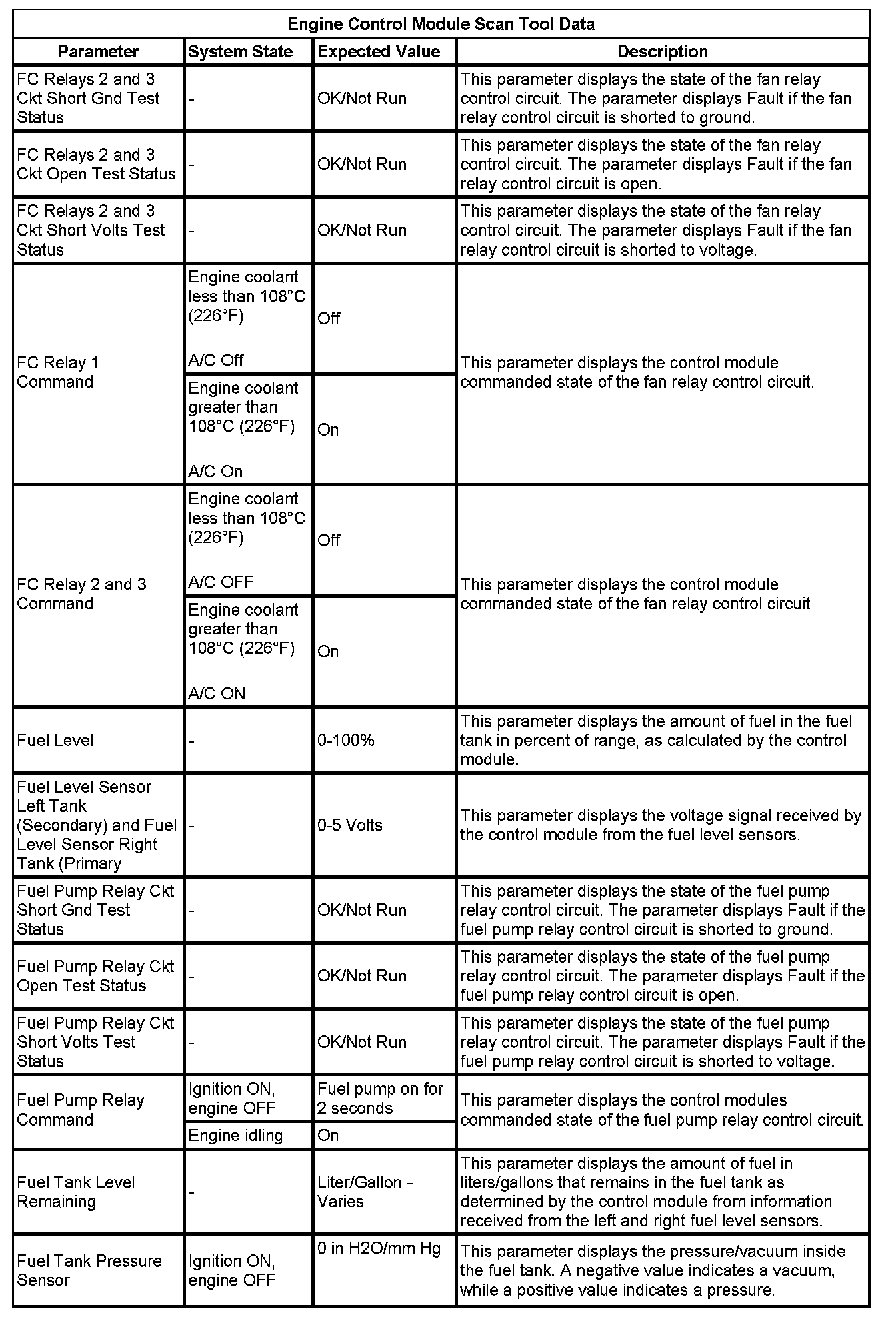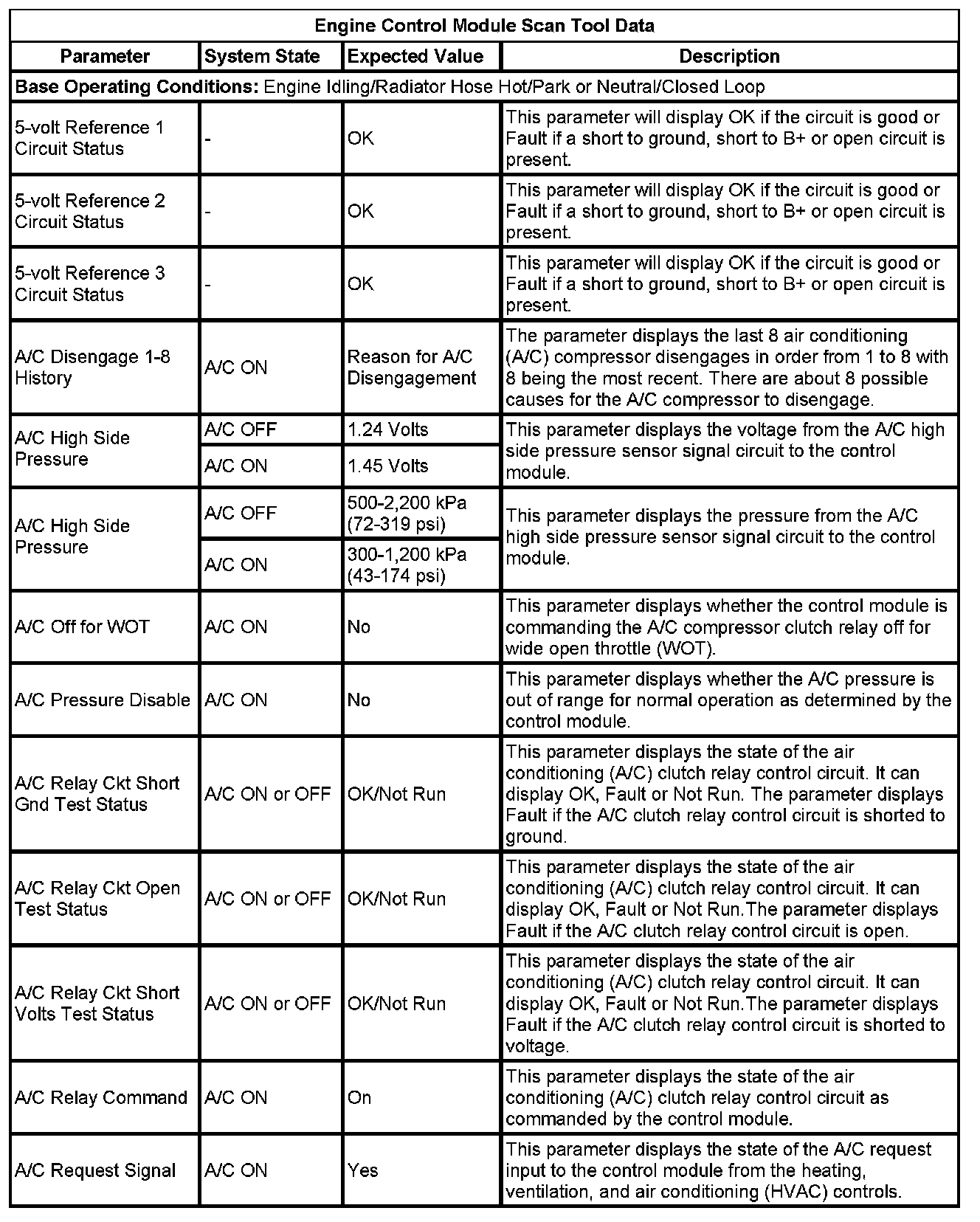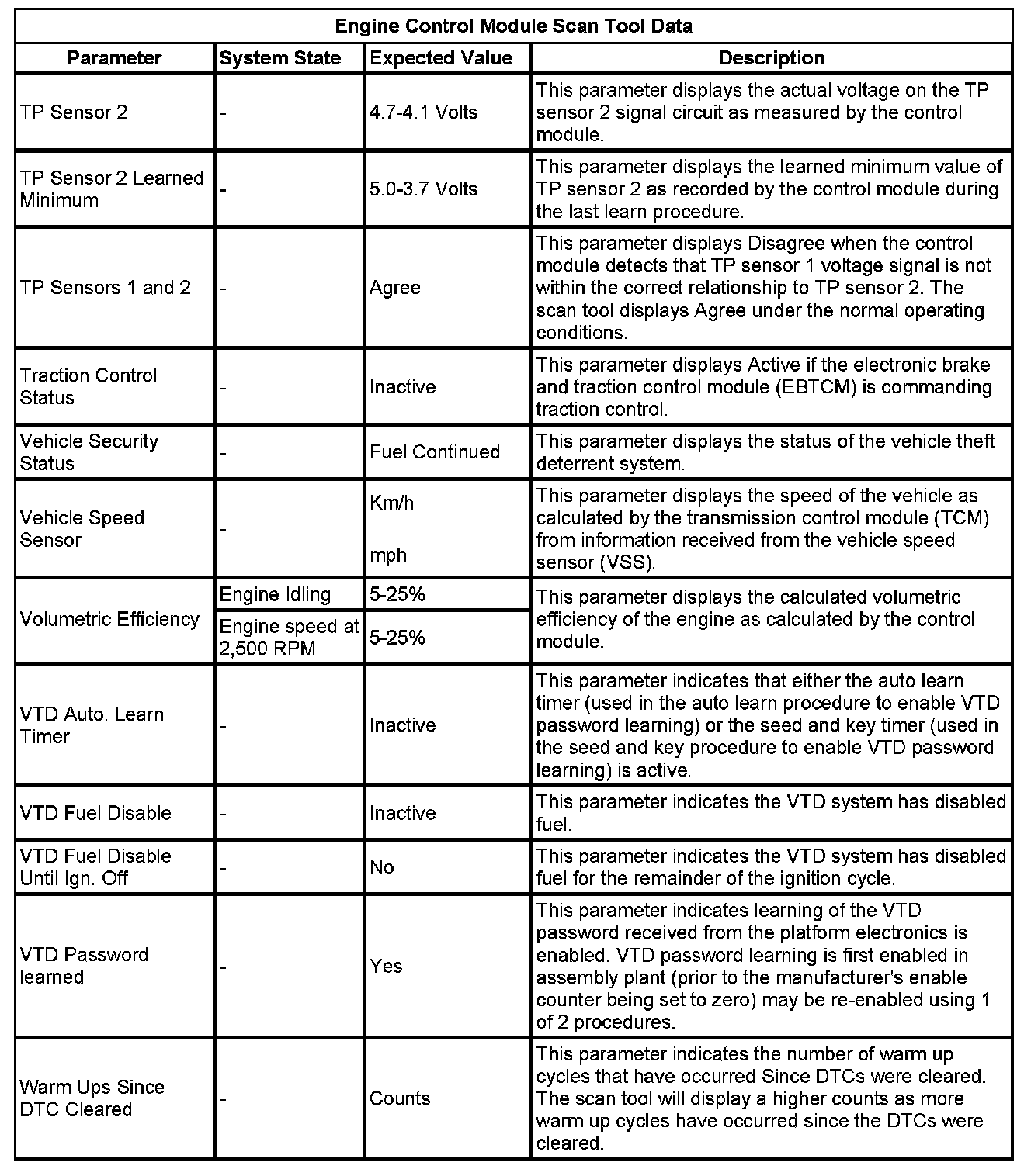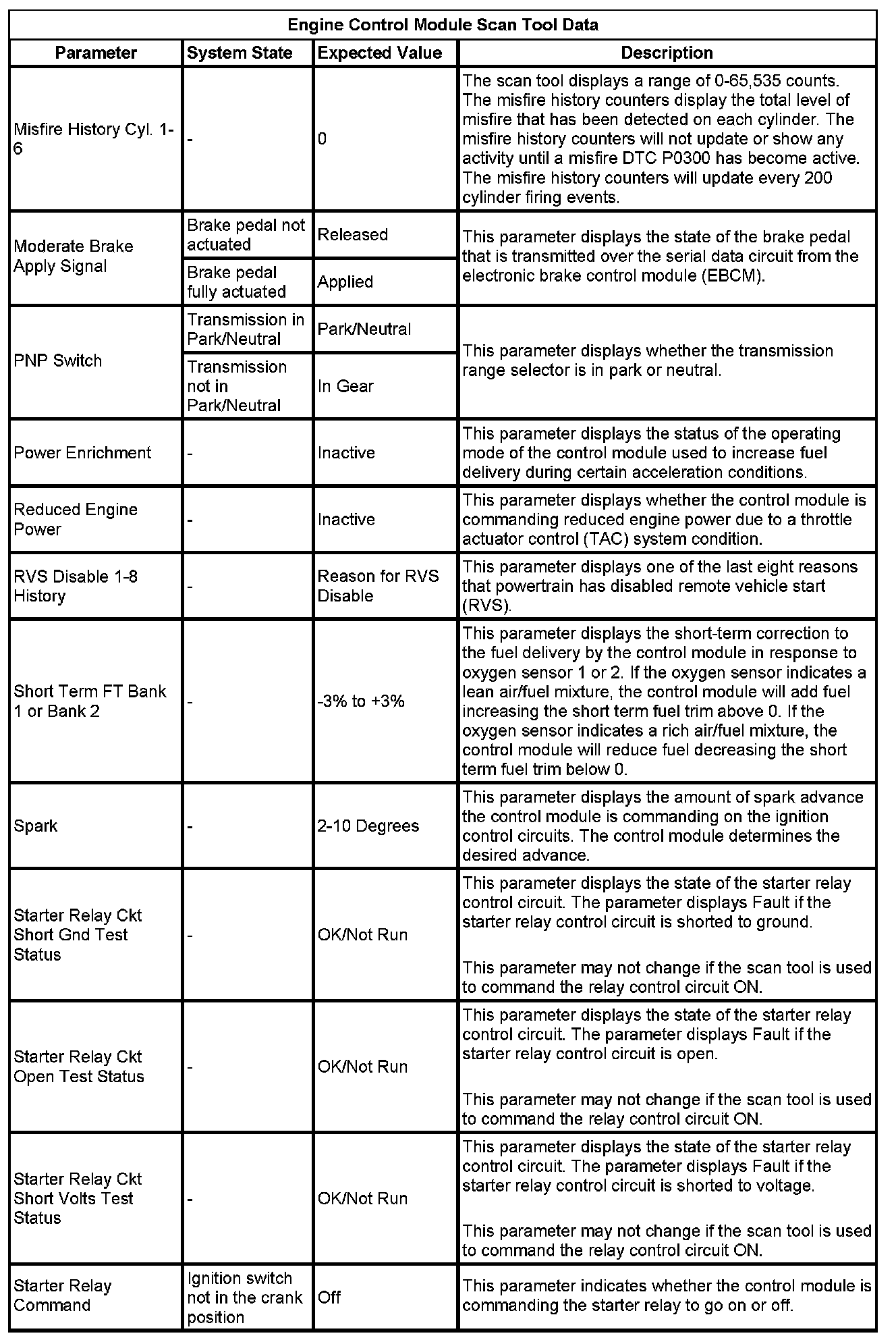 The Engine Control Module Scan Tool Data List contains all engine-related parameters that are available on the scan tool. The list is arranged in alphabetical order. A given parameter may appear in any one of the data lists, and in some cases may appear more than once, or in more than one data list in order to group certain related parameters together.