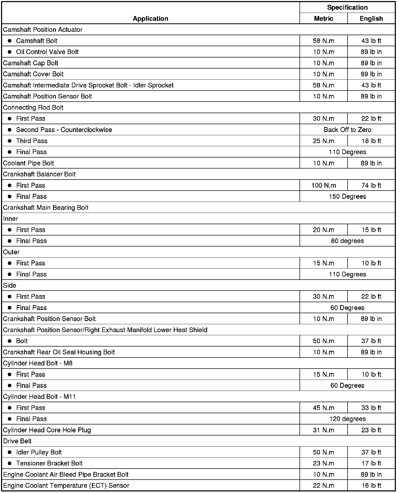 Fastener Tightening Specifications
