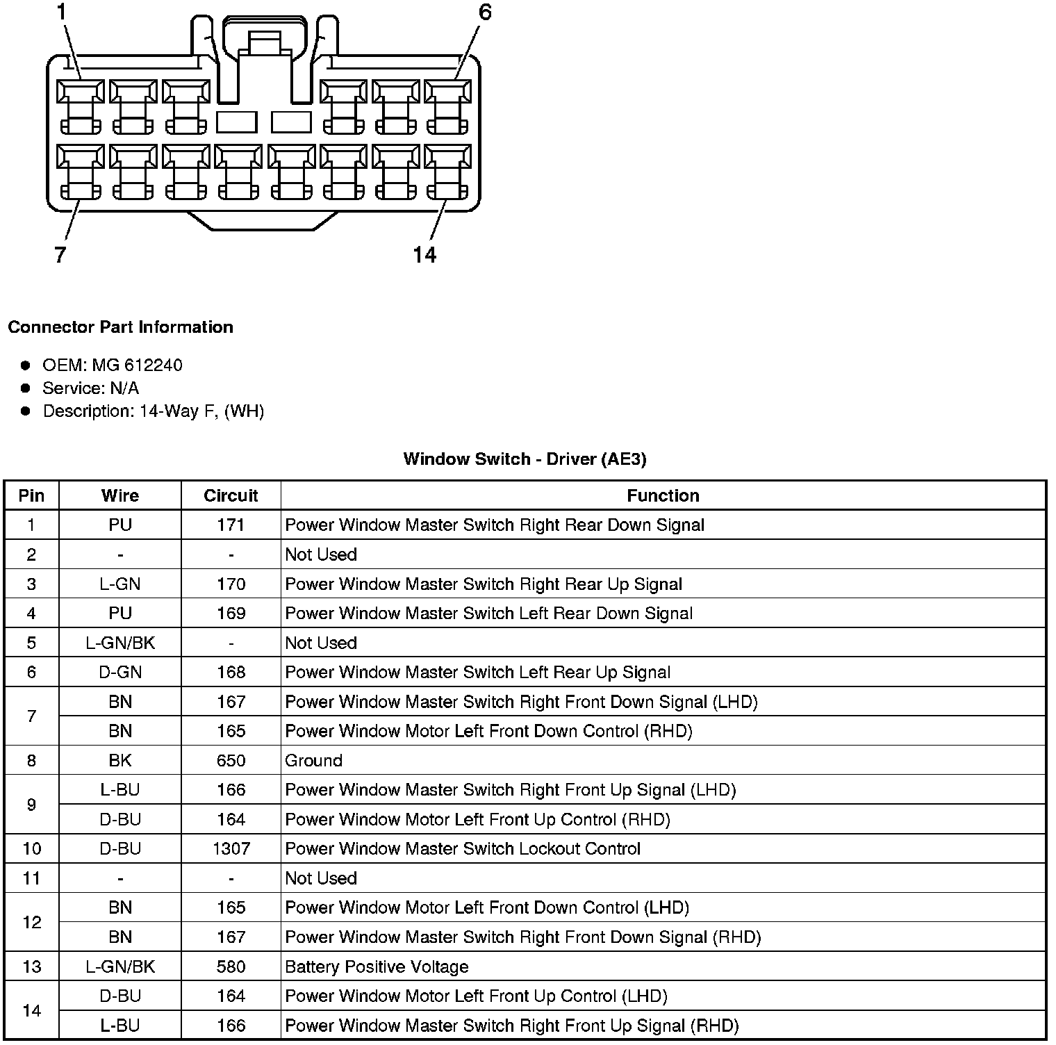 Window Switch - Driver (AE3)