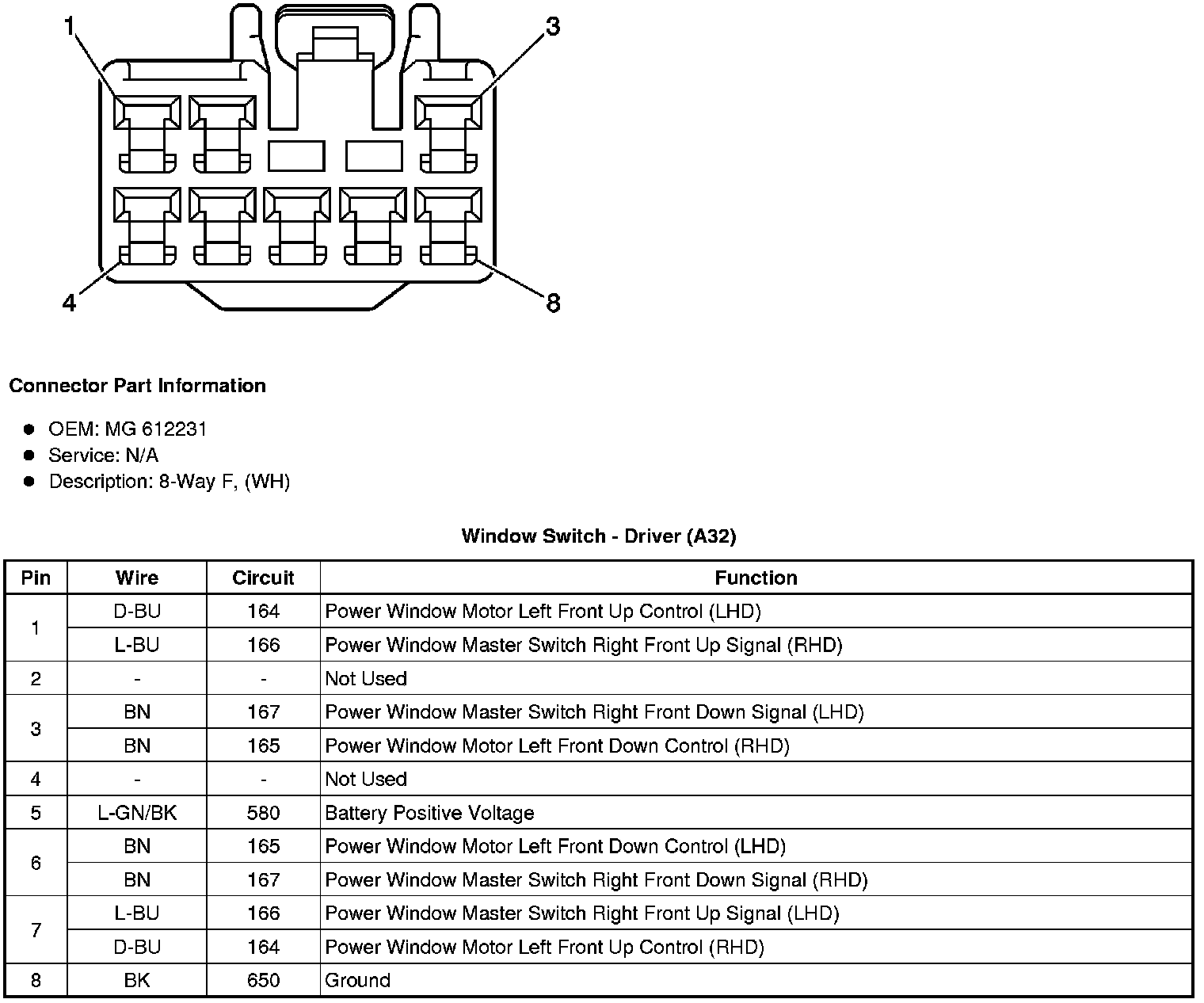 Window Switch - Driver (A32)