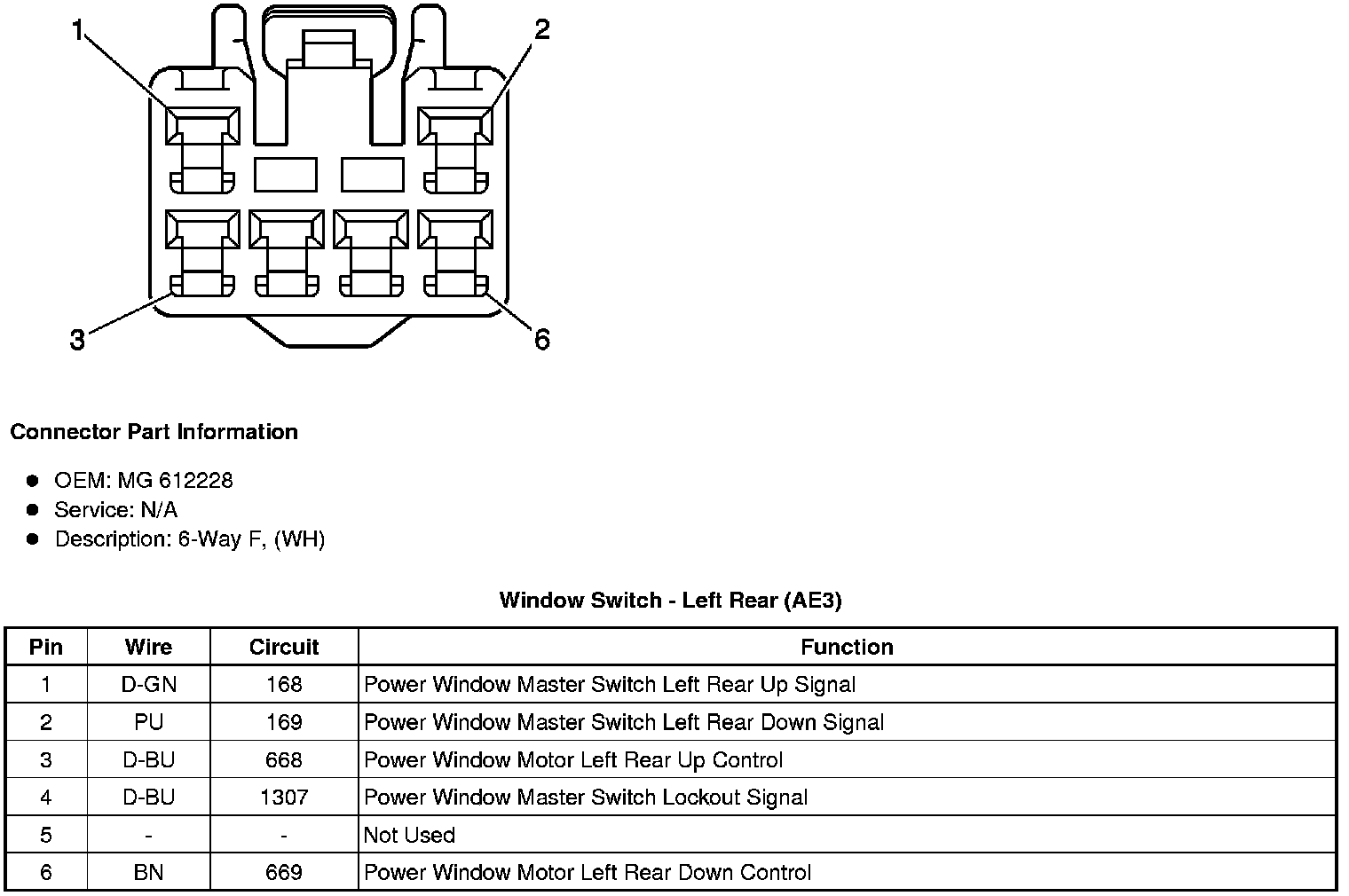 Window Switch - Left Rear (AE3)