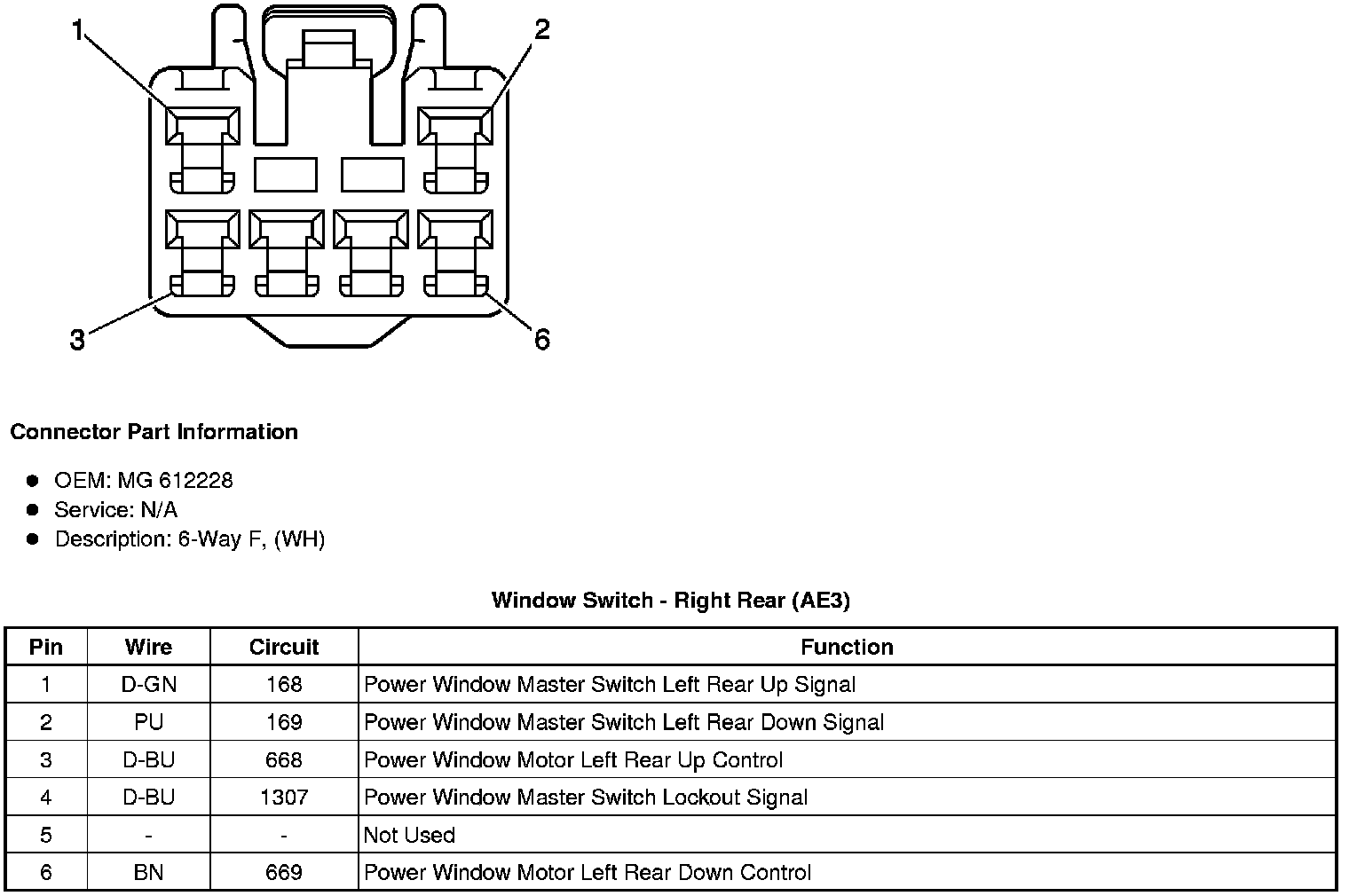Window Switch - Right Rear (AE3)