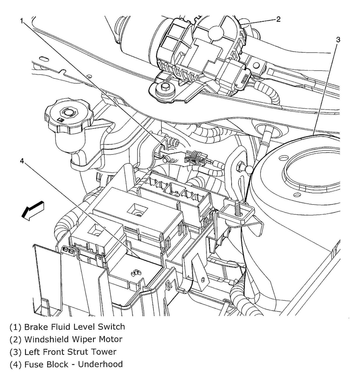 | Fuse Block - Underhood | Engine compartment, next to left strut tower. See Figure. |