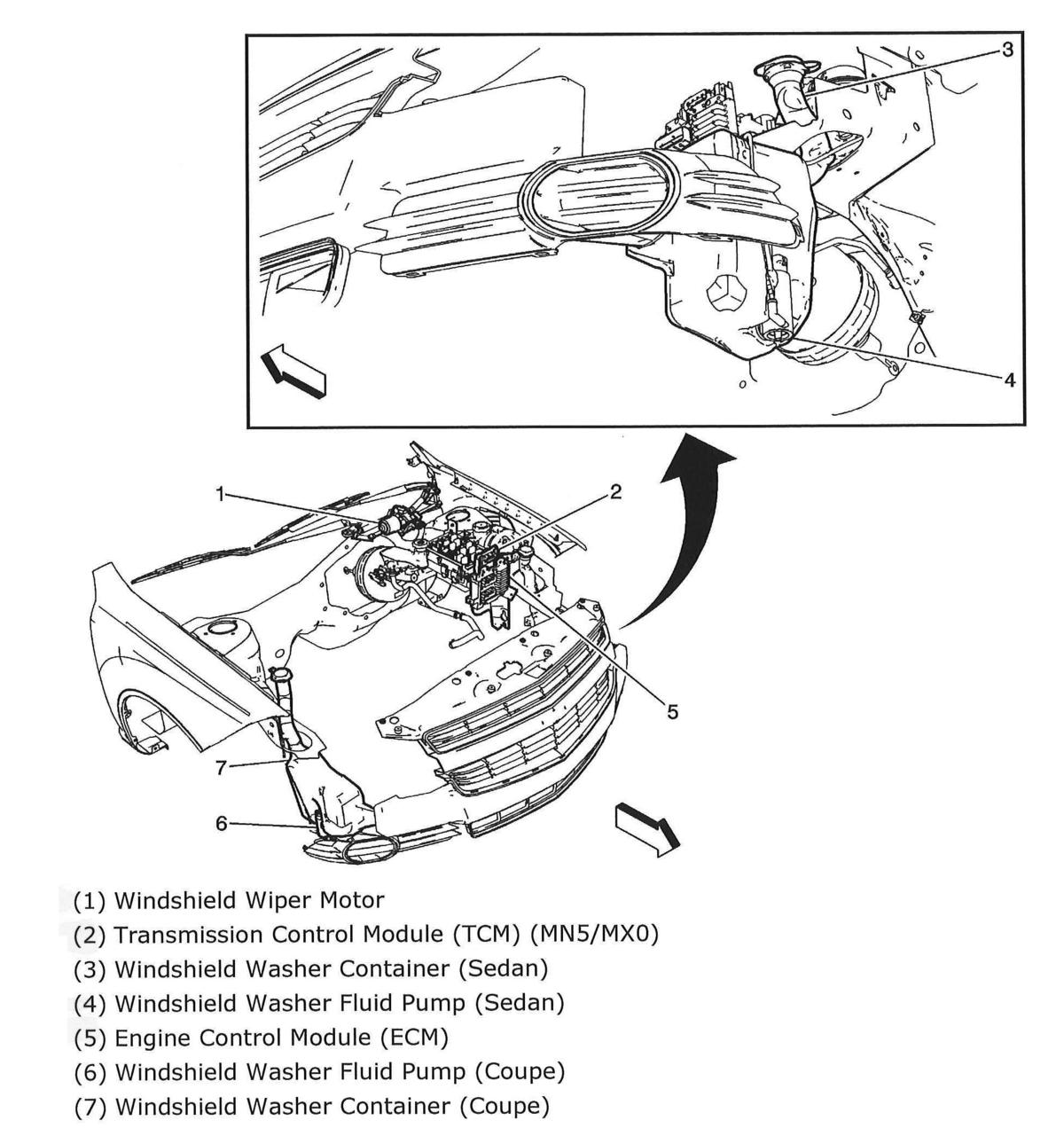 | Transmission Control Module (TCM) | Left rear of engine compartment. See Figure. |