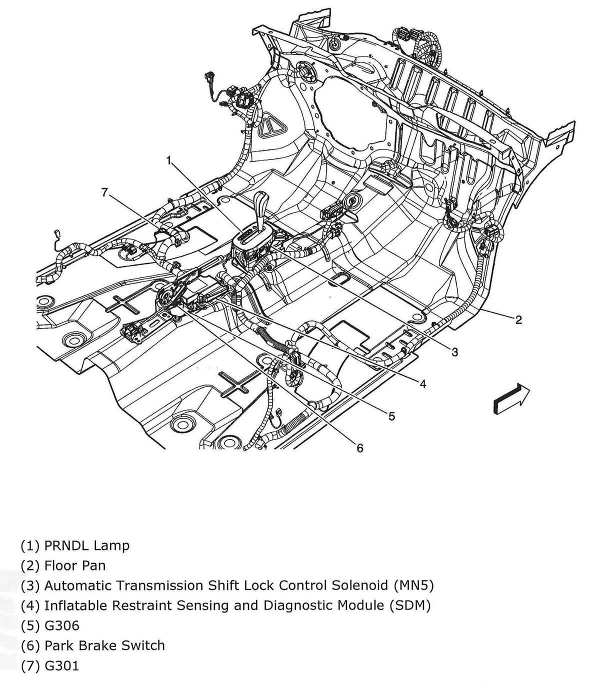 | Inflatable Restraint Sensing & Diagnostic Module | Under center console. See Figure. |