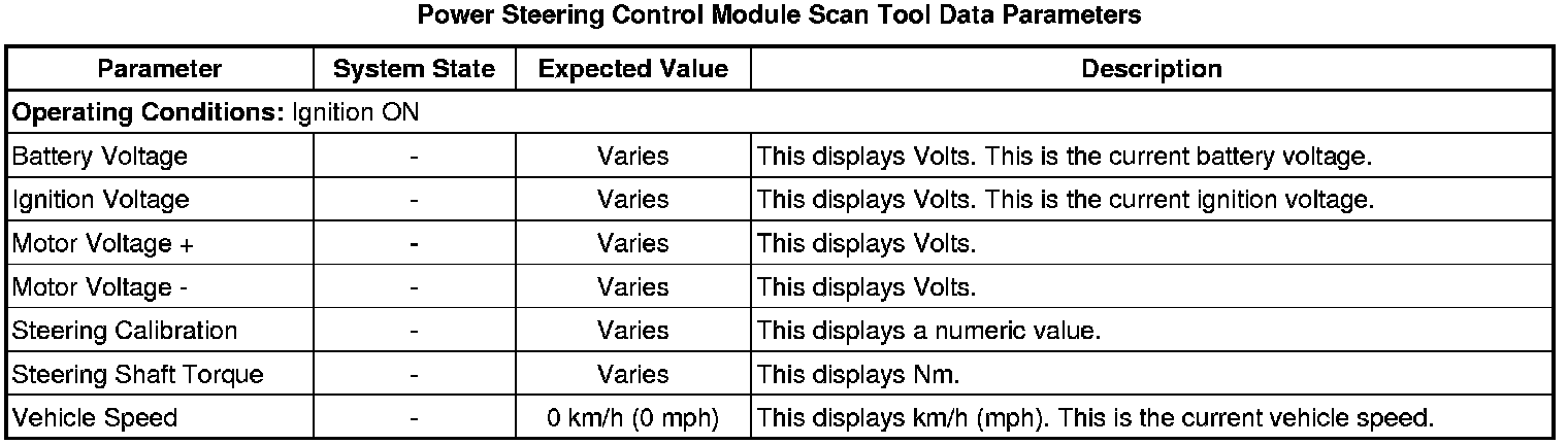 Power Steering Control Module Scan Tool Information