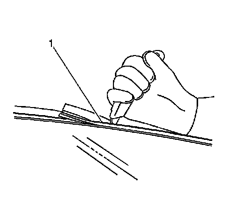 1. Remove the rear window reveal molding. Refer to Adhesive Installation of Stationary Windows (Quarter) (Adhesive Installation of Stationary Windows (Quarter))Adhesive Installation of Stationary Windows (Windshield) (Adhesive Installation of Stationary Windows (Windshield)).