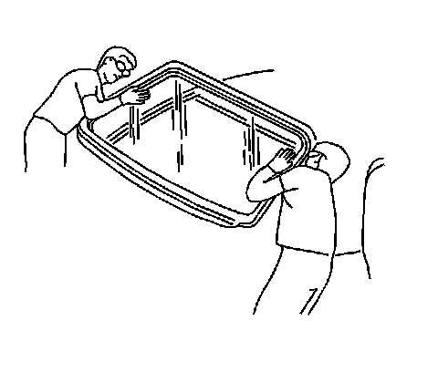 1. Install the rear window into the opening. Refer to Adhesive Installation of Stationary Windows (Quarter) (Adhesive Installation of Stationary Windows (Quarter))Adhesive Installation of Stationary Windows (Windshield) (Adhesive Installation of Stationary Windows (Windshield)).