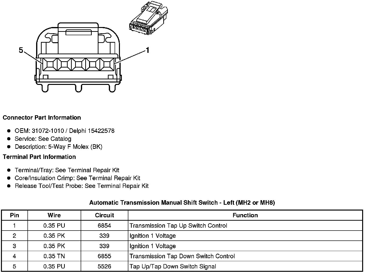 Automatic Transmission Manual Shift Switch - Left (MH2 or MH8)