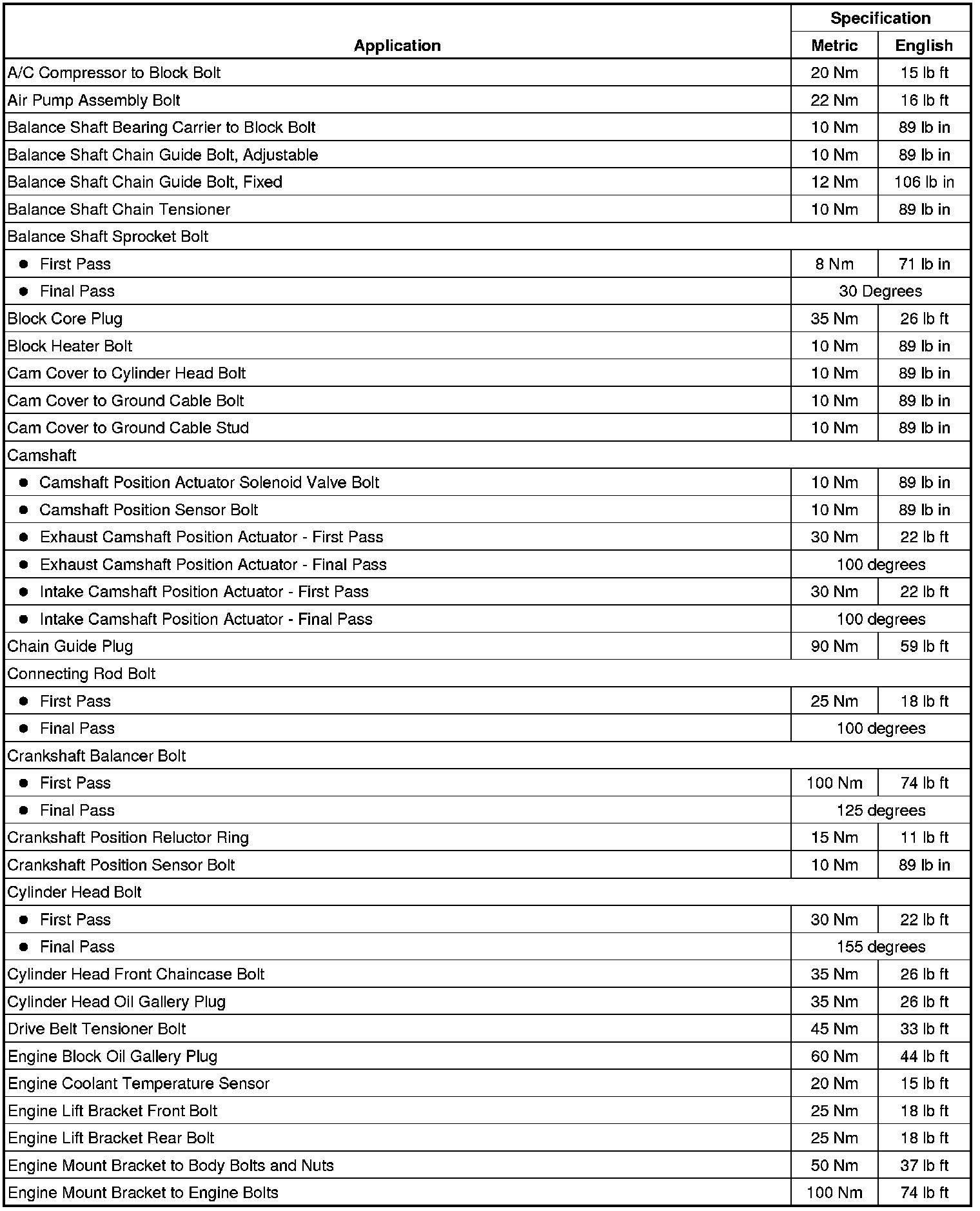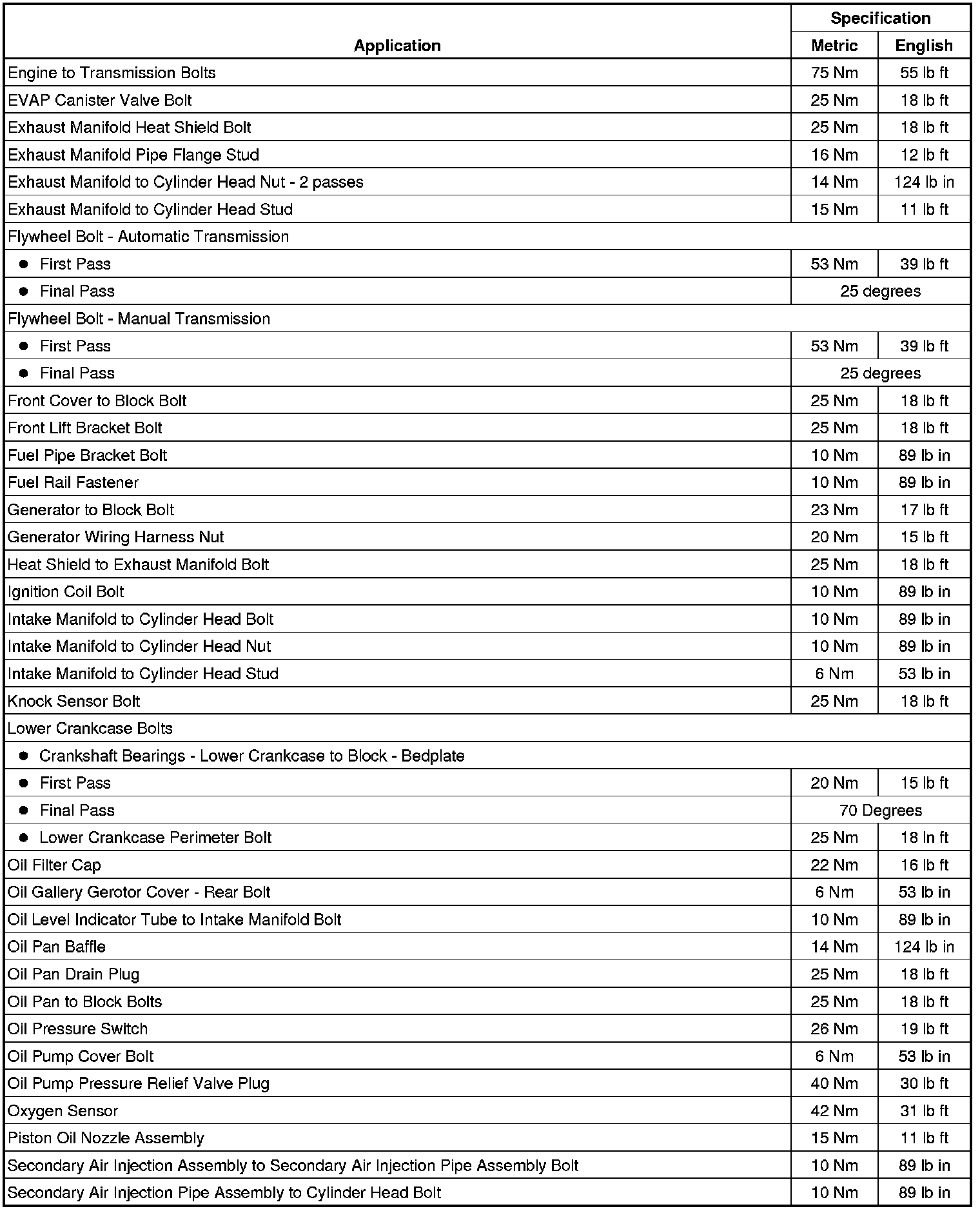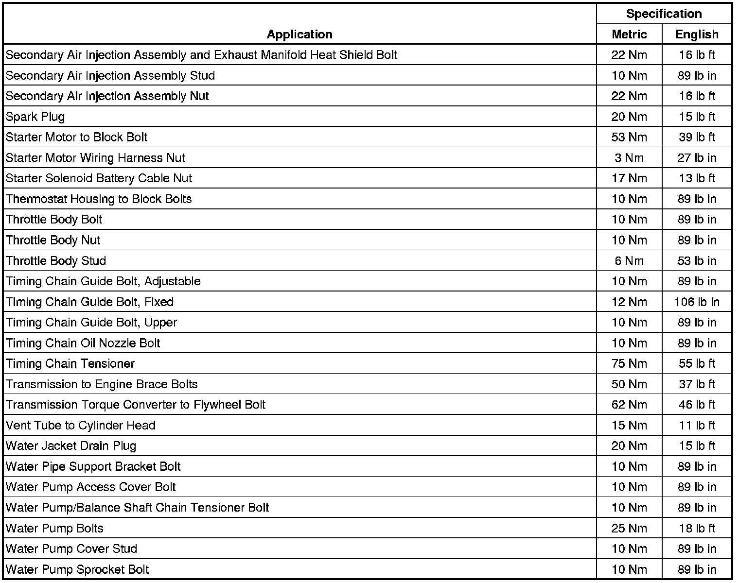 Fastener Tightening Specifications