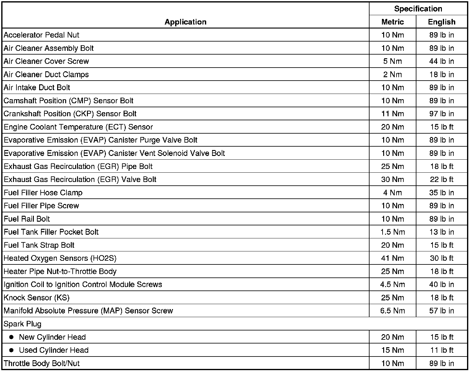 Fastener Tightening Specifications