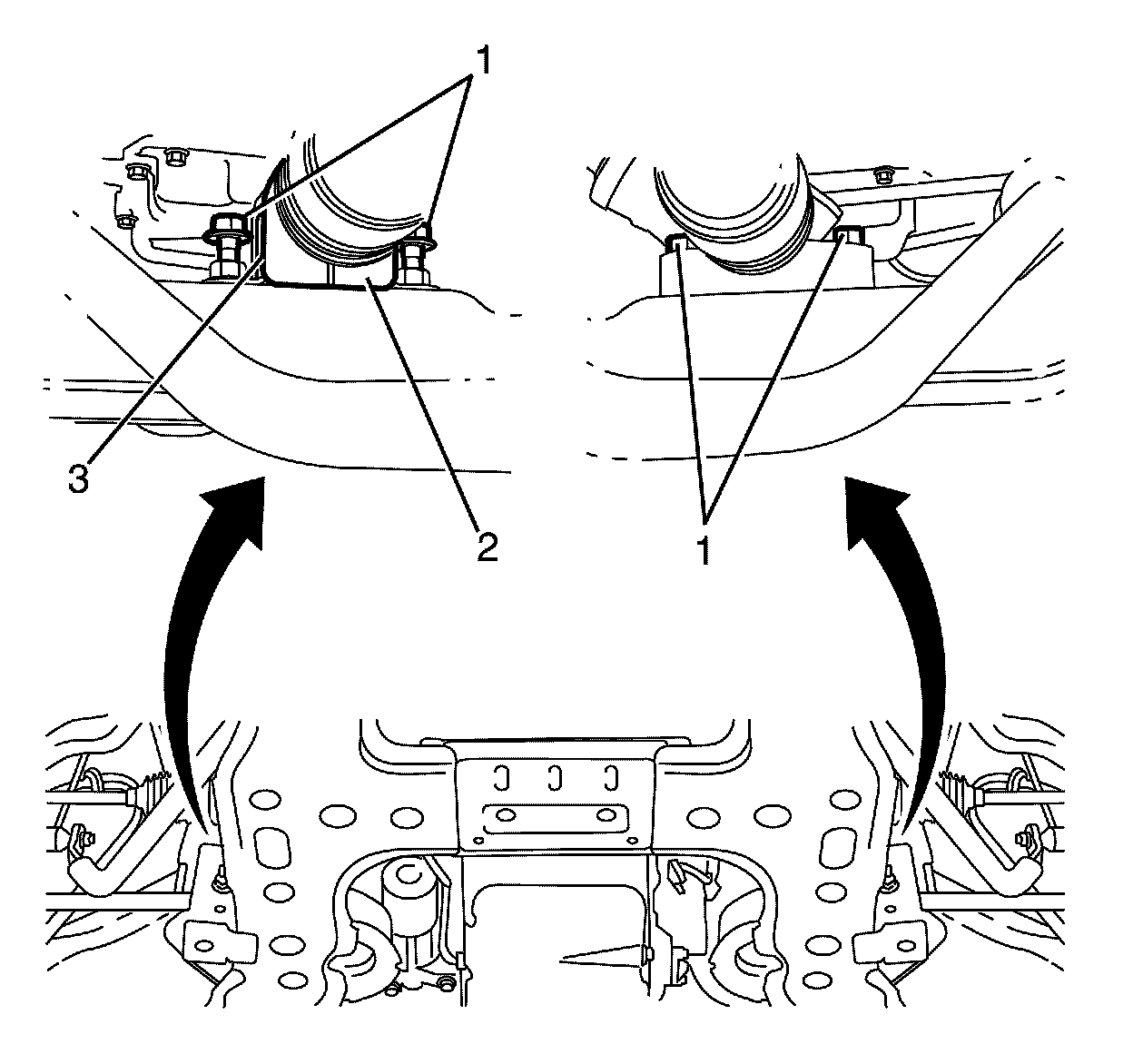 3. Install the stabilizer bar caps (2) to the front subframe