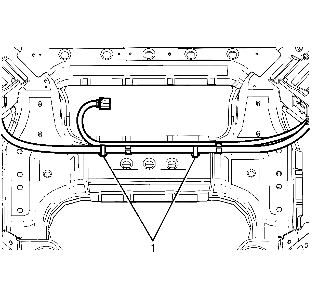 15. Secure the engine electrical harness retainers (1) to the frame.