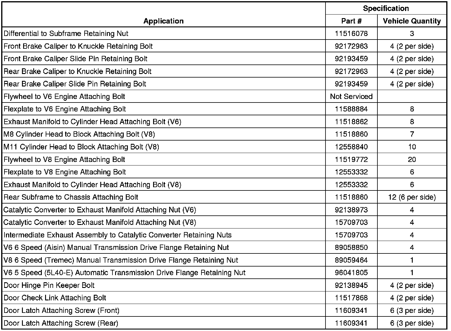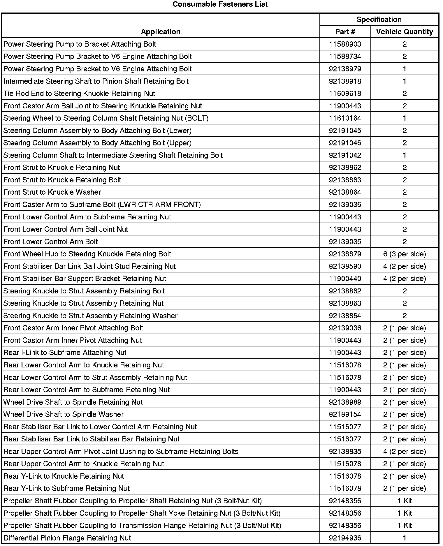 The metric fasteners on Holden products are designed to new, international standards. The following are the common sizes and pitches, except for special applications: