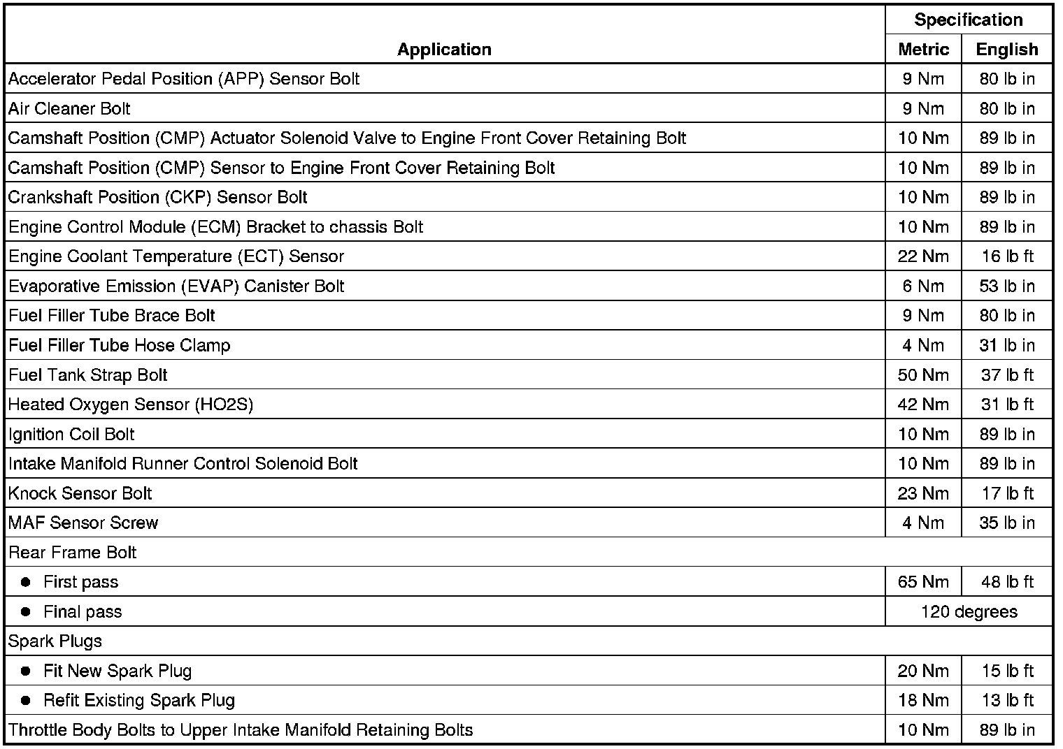 Fastener Tightening Specifications
