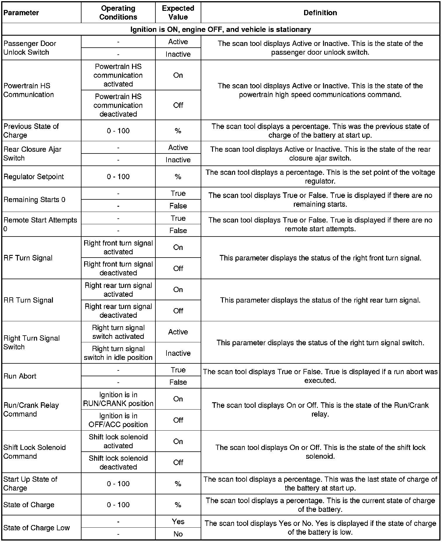 Body Control Module Scan Tool Data Parameters