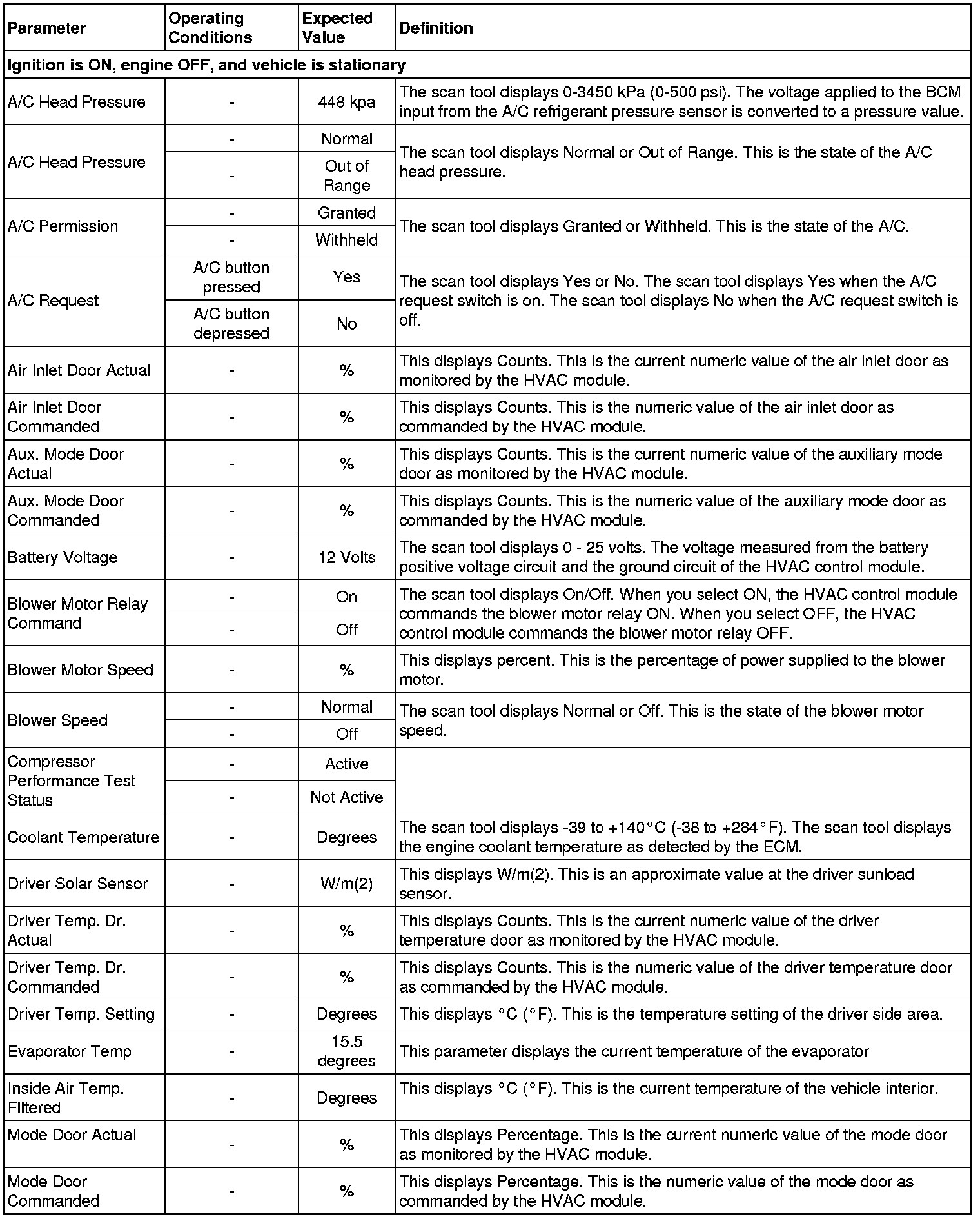 Heating Ventilation Air Conditioning Scan Tool Data Parameters