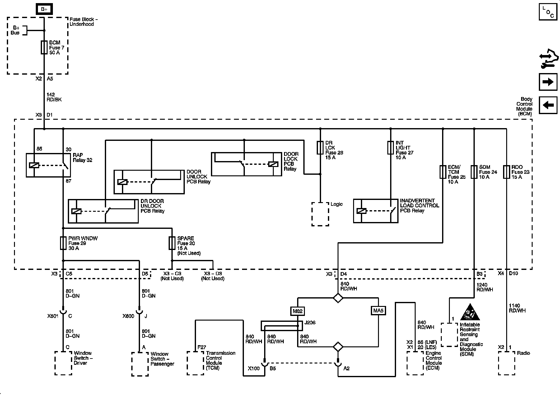 , INT/LIGHT, PWR WNDW, RDO, and SDM Fuses
