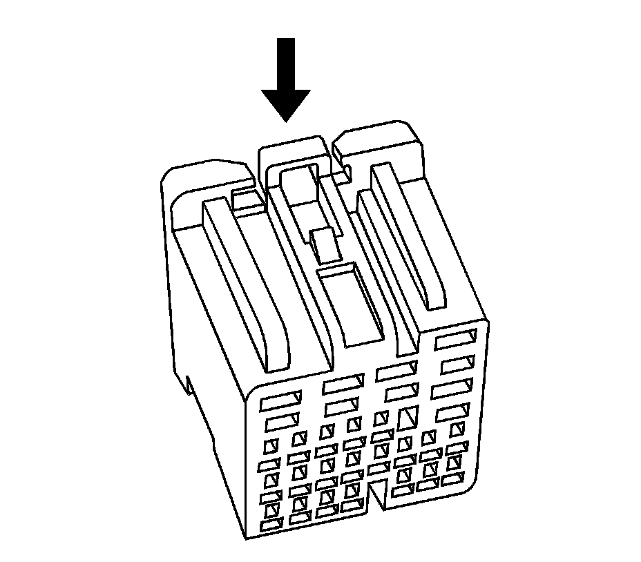 2. Locate the two indents of the terminal position assurance (TPA) located on the bottom of the connector body.