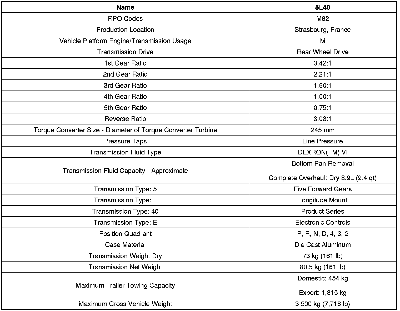 Transmission General Specifications