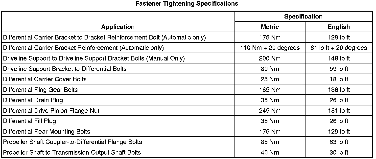 Fastener Tightening Specifications