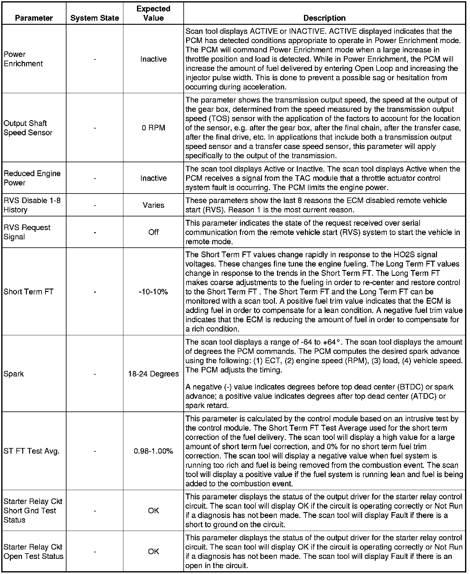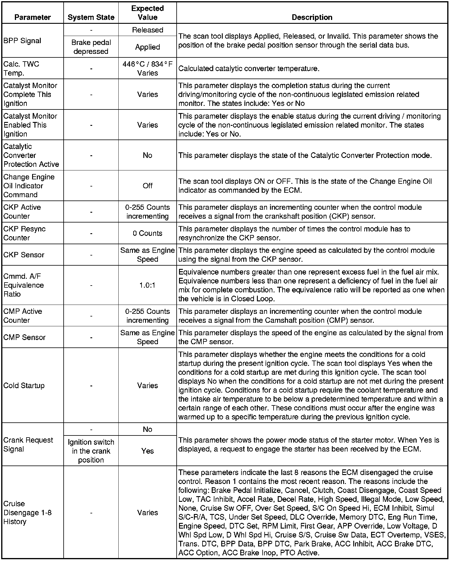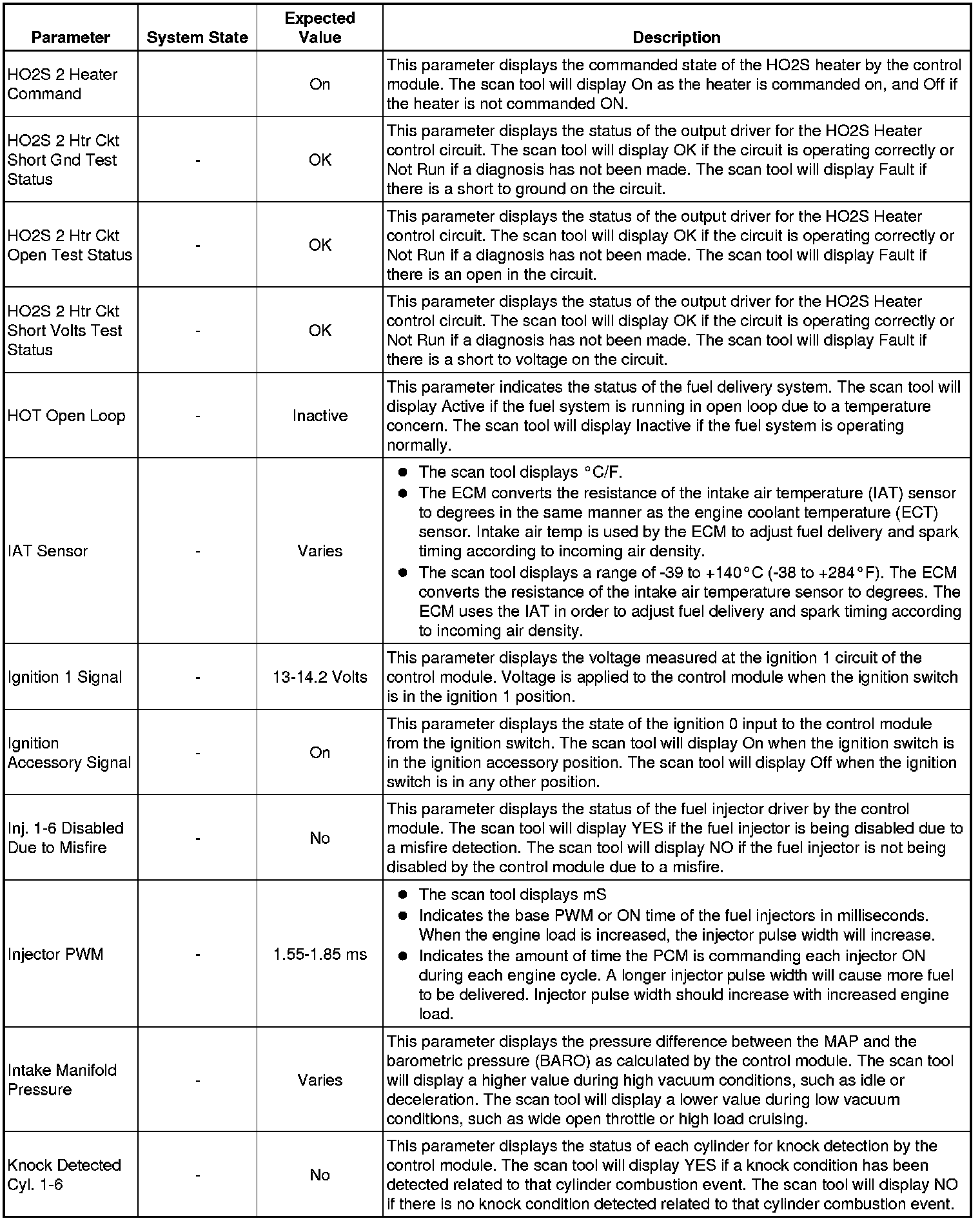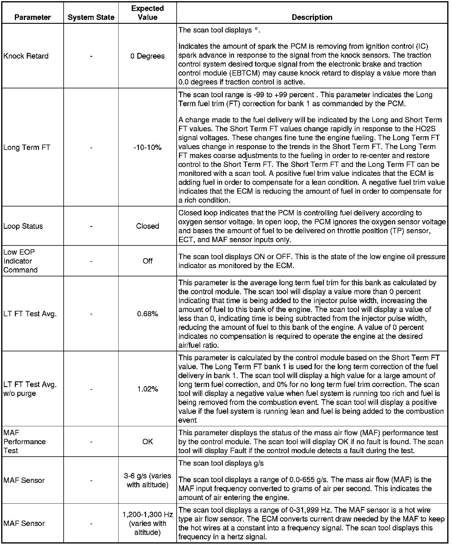 Only the parameters listed below are referenced in this service manual for use in diagnosis. If all values are within the typical range described below, refer to Symptoms - Engine Controls (- Symptoms - Engine Controls) for diagnosis.