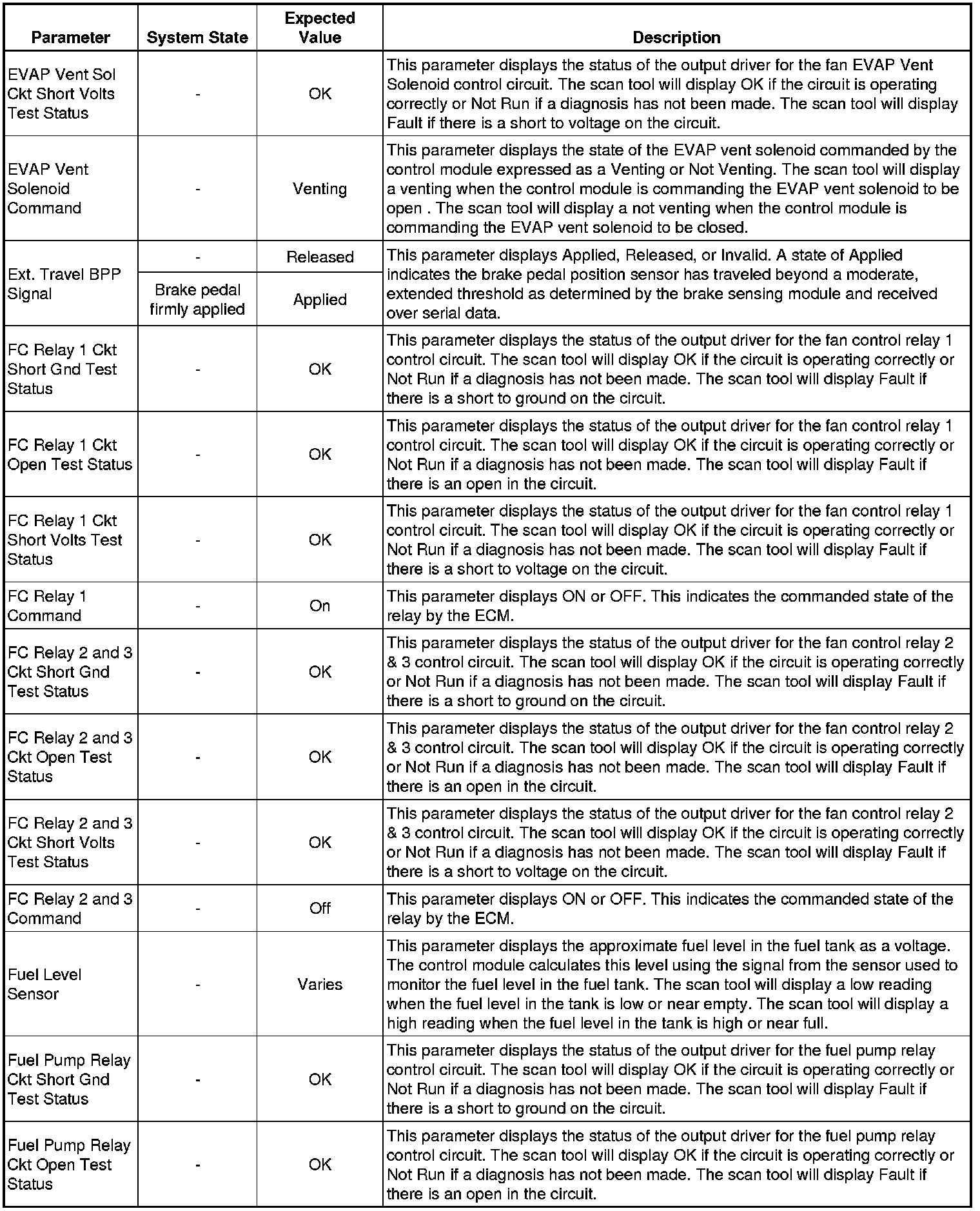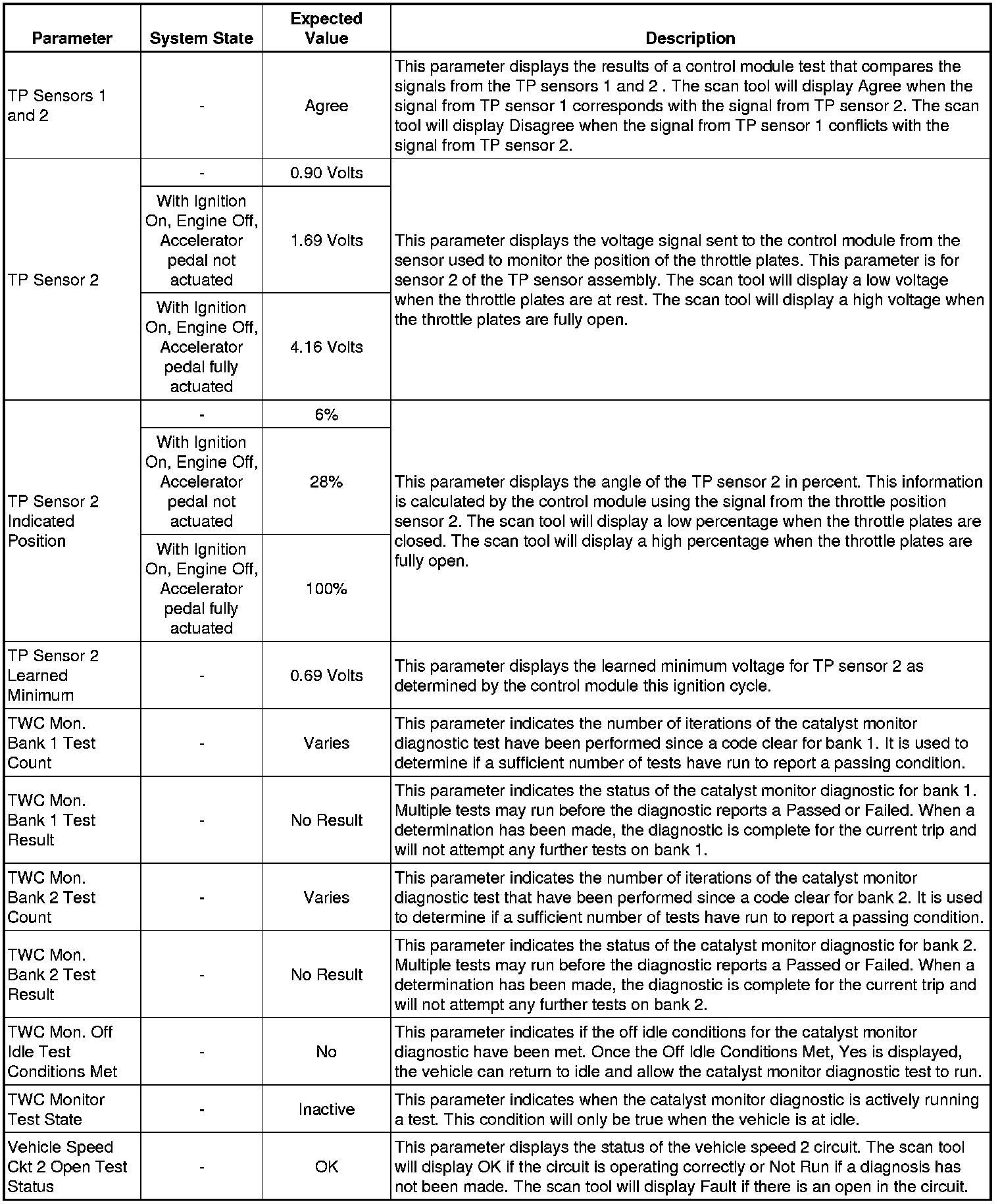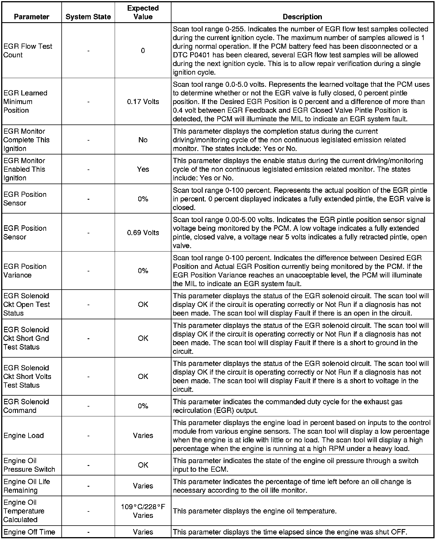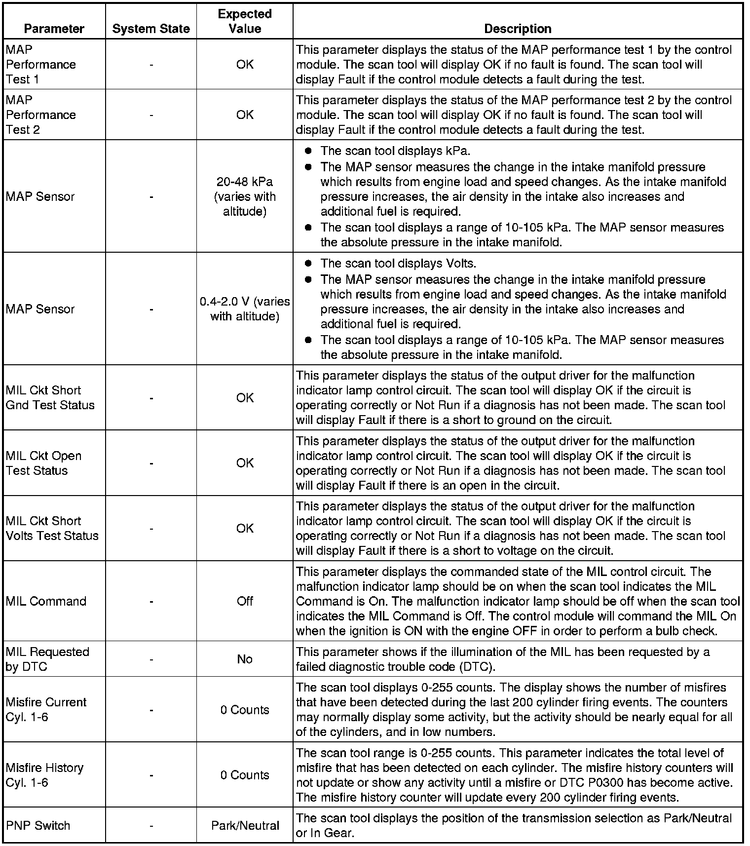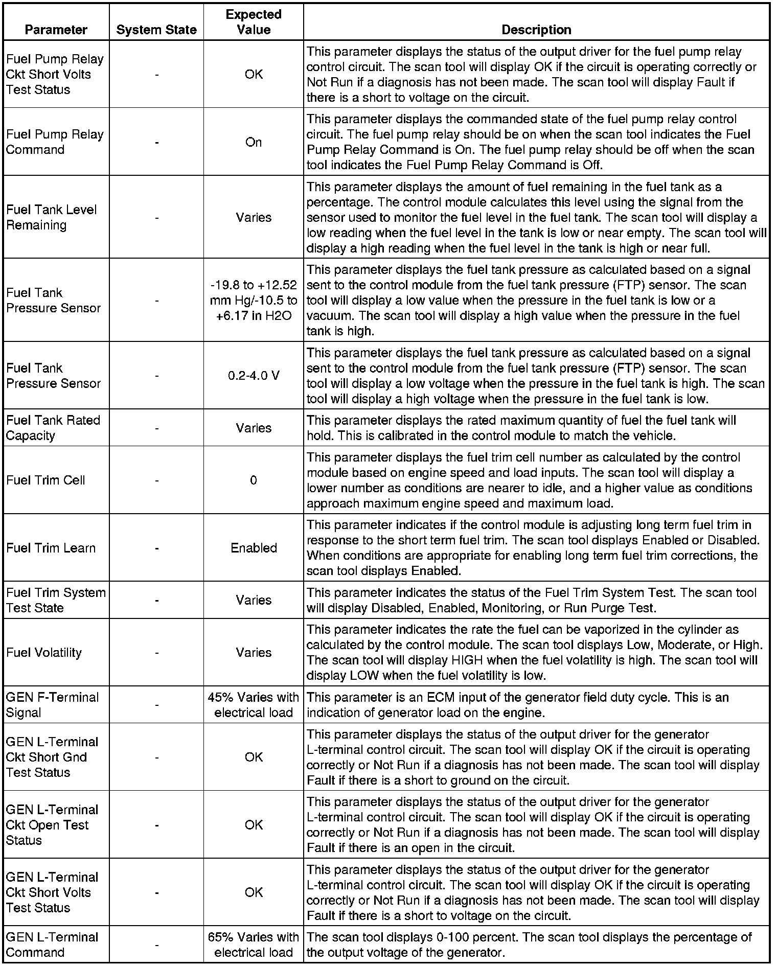 Only the parameters listed below are referenced in this service manual for use in diagnosis. If all values are within the typical range described below, refer to Symptoms - Engine Controls (- Symptoms - Engine Controls) for diagnosis.
