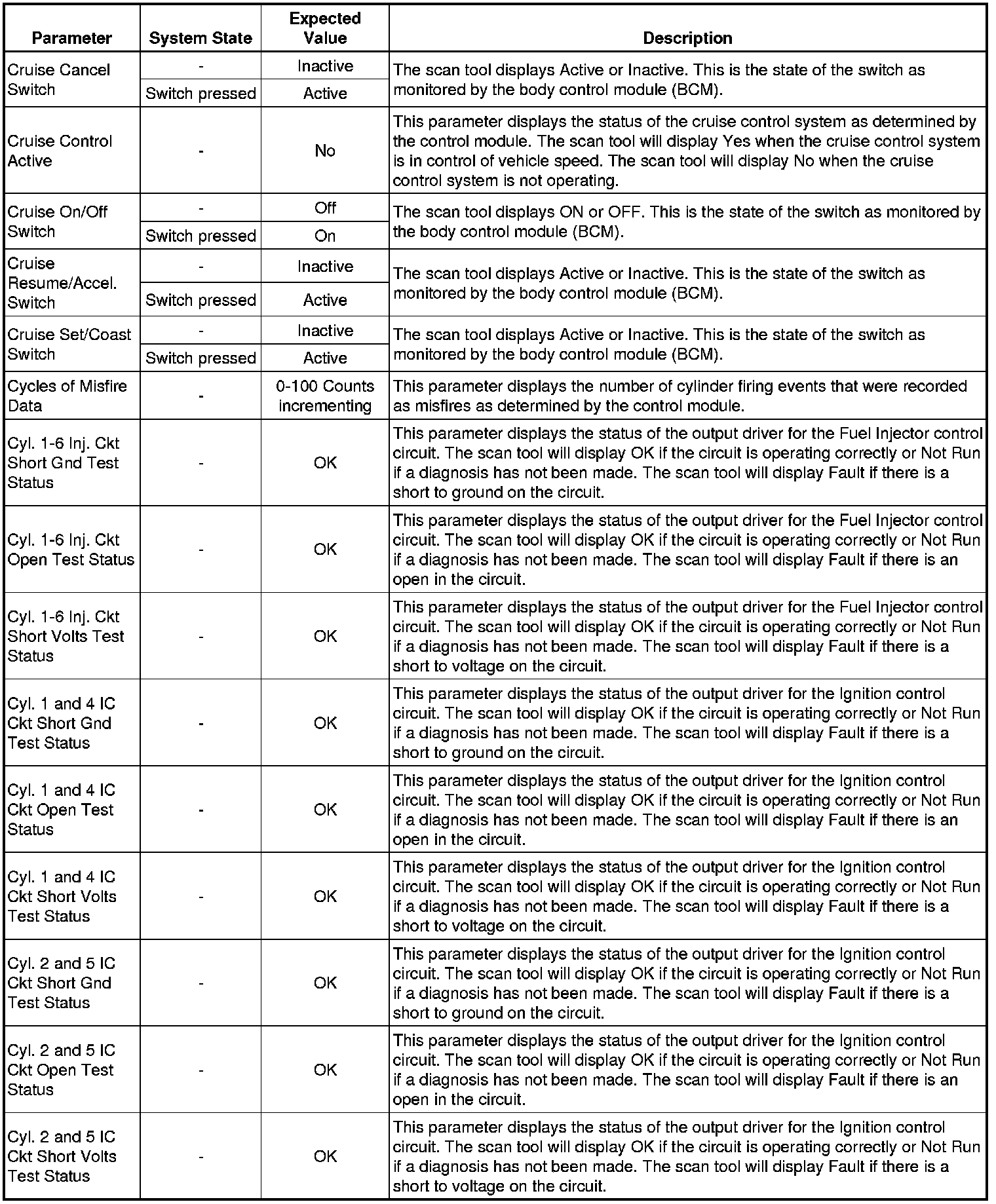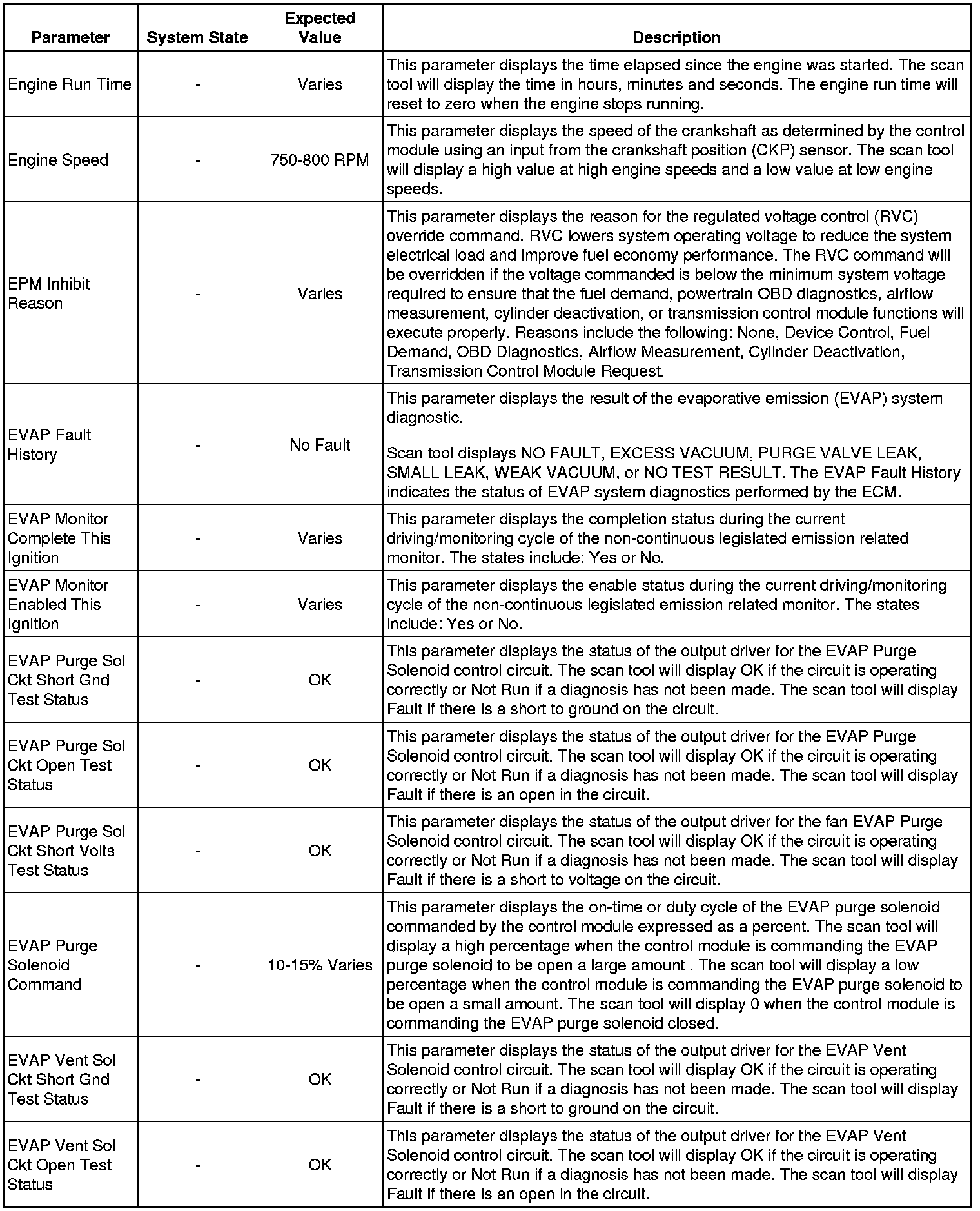 The Engine Control Module Scan Tool Data List contains all engine-related parameters that are available on the scan tool. The list is arranged in alphabetical order. A given parameter may appear in any one of the data lists, and in some cases may appear more than once, or in more than one data list in order to group certain related parameters together.