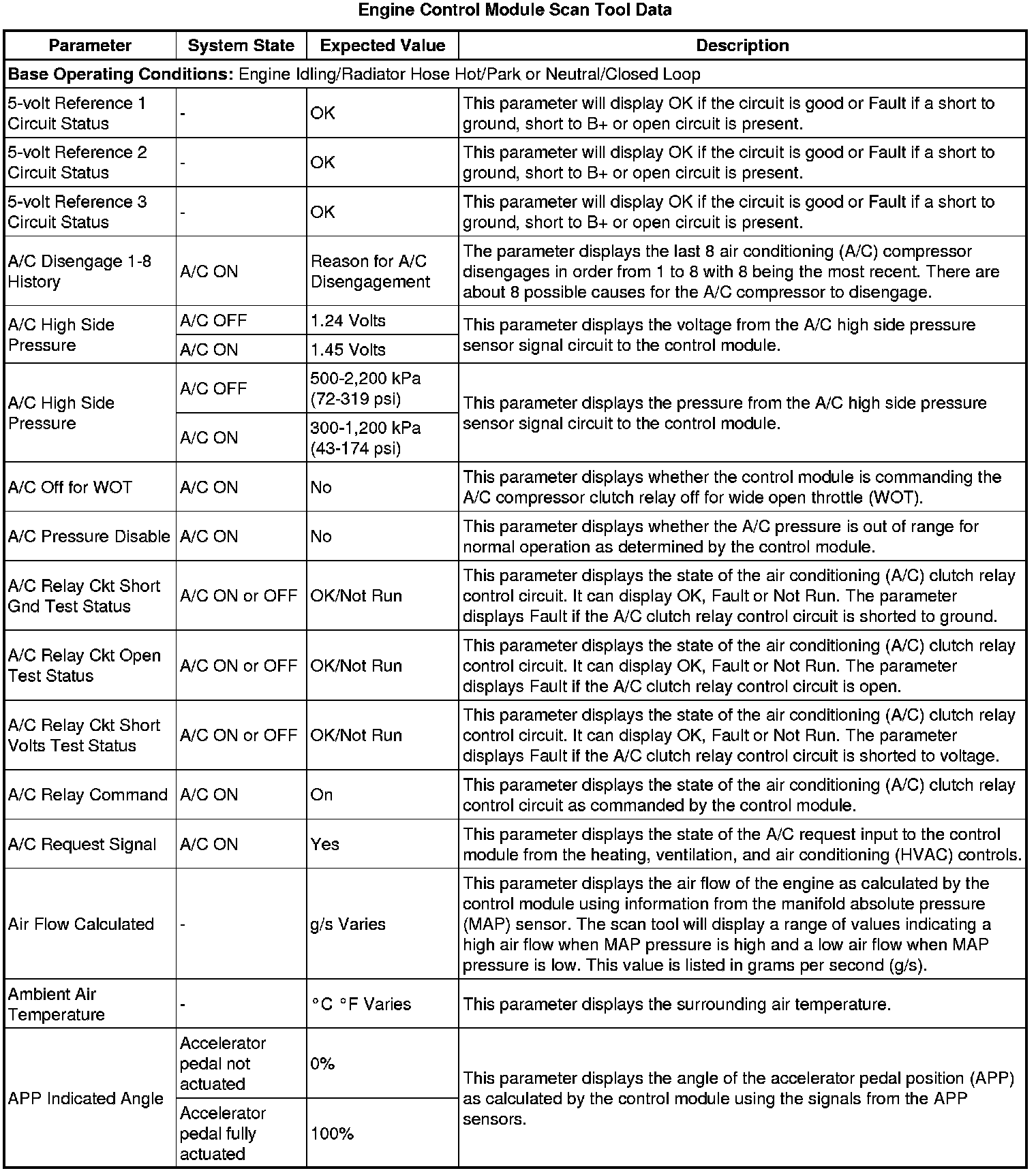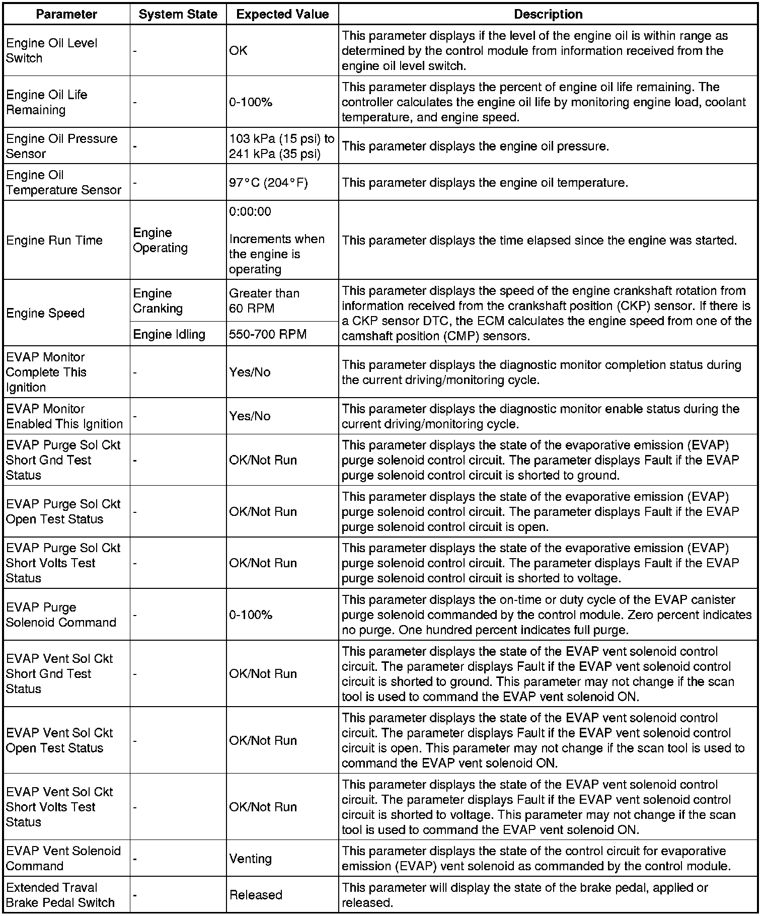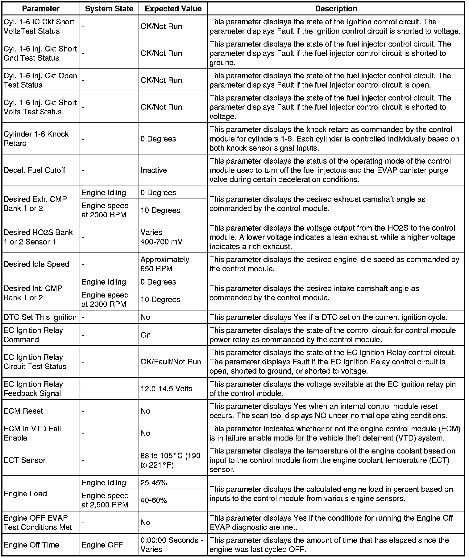 The Engine Control Module Scan Tool Data List contains all engine-related parameters that are available on the scan tool. The list is arranged in alphabetical order. A given parameter may appear in any one of the data lists, and in some cases may appear more than once, or in more than one data list in order to group certain related parameters together.