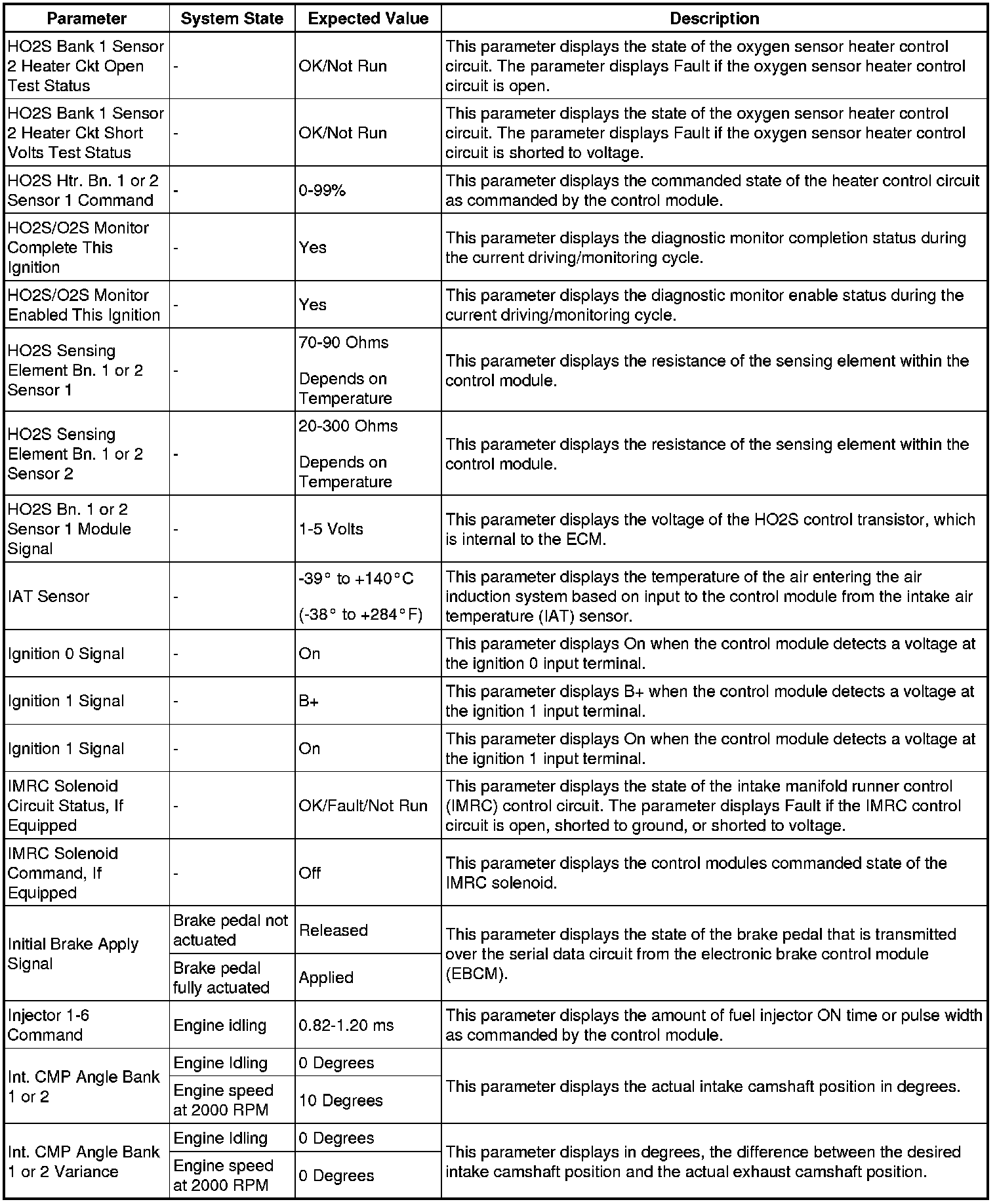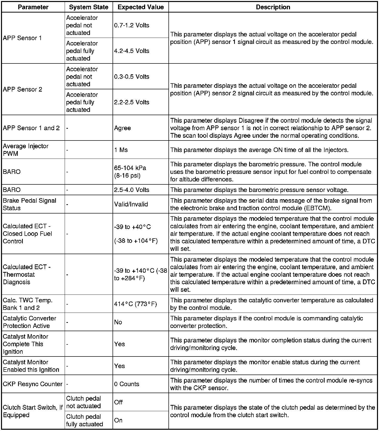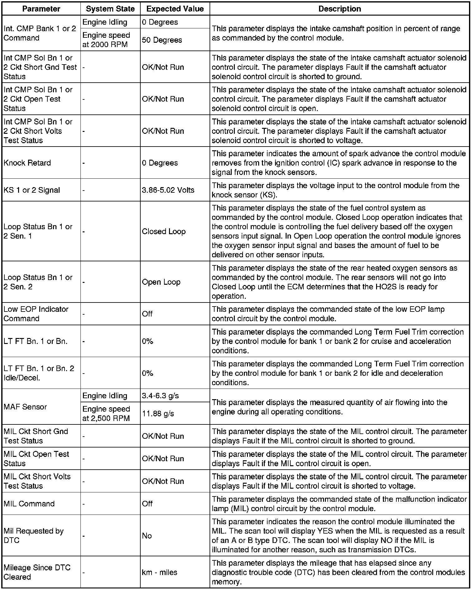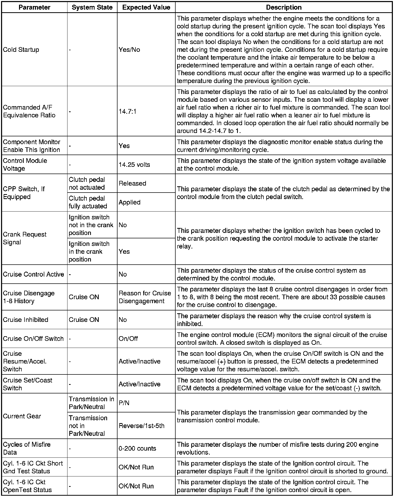 The Engine Control Module Scan Tool Data List contains all engine-related parameters that are available on the scan tool. The list is arranged in alphabetical order. A given parameter may appear in any one of the data lists, and in some cases may appear more than once, or in more than one data list in order to group certain related parameters together.