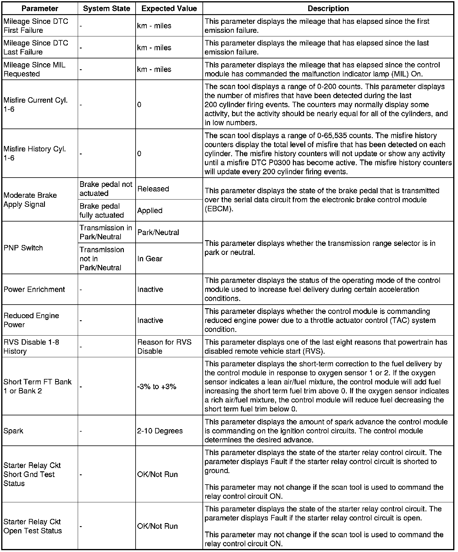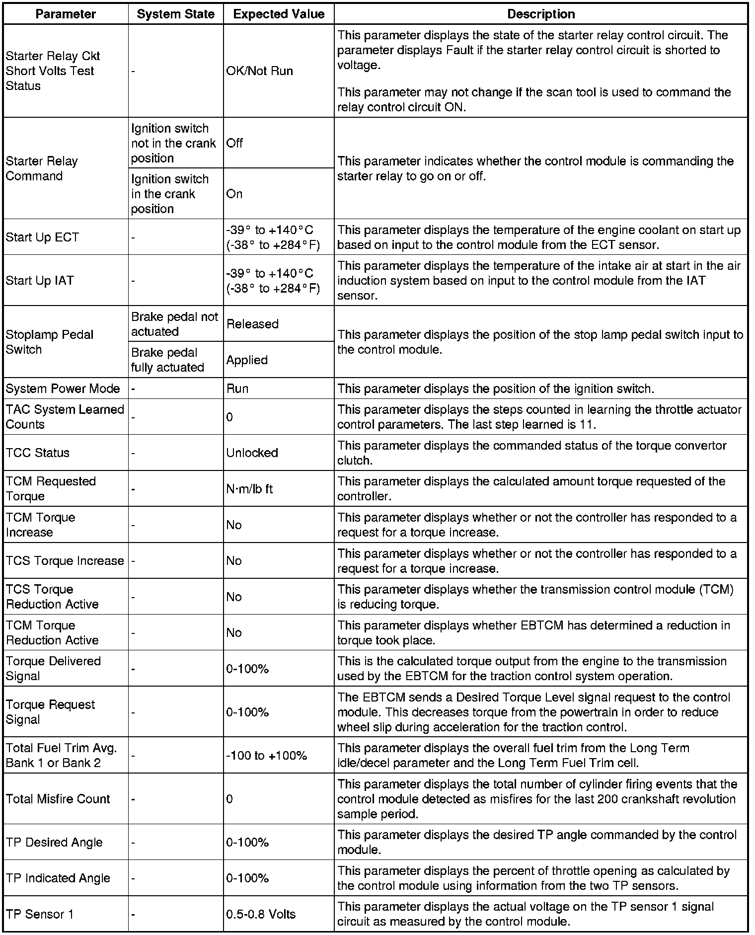 Only the parameters listed below are referenced in this service manual for use in diagnosis.