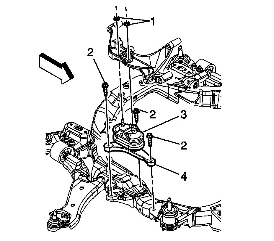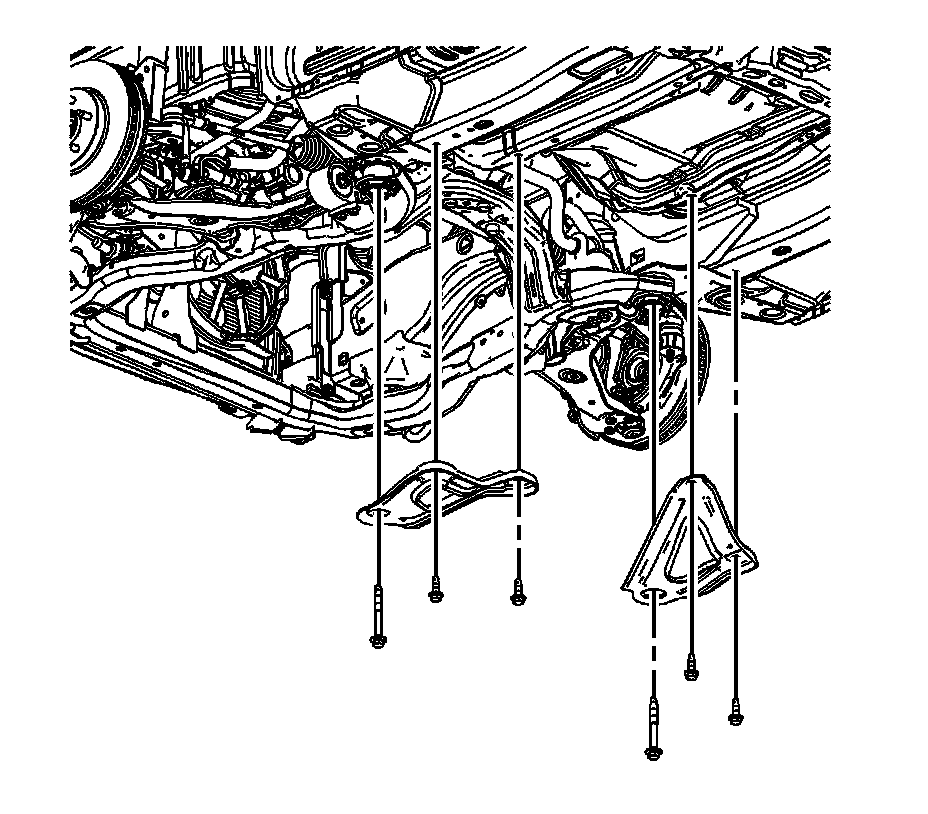 4. Install the frame reinforcement. Refer to Drivetrain and Front Suspension Frame Reinforcement Replacement (LY7) (Service and Repair)Drivetrain and Front Suspension Frame Reinforcement Replacement (LNJ) (Service and Repair).