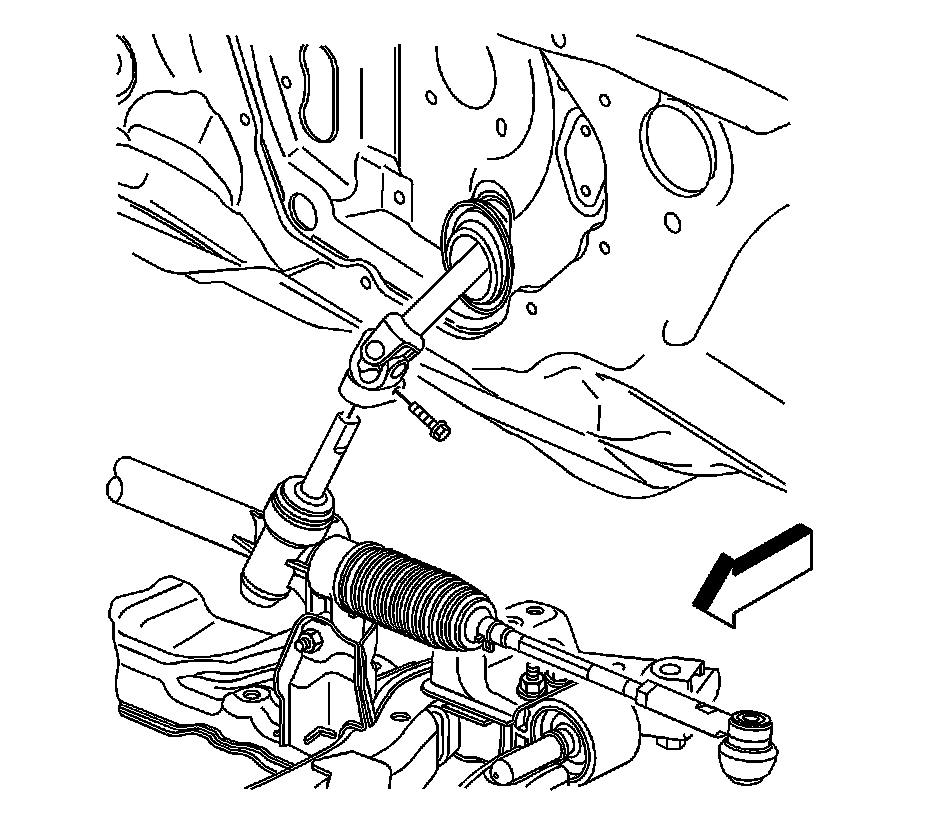 10. Disconnect the intermediate steering shaft from the steering gear. Refer to Intermediate Steering Shaft Replacement (Intermediate Steering Shaft Replacement).