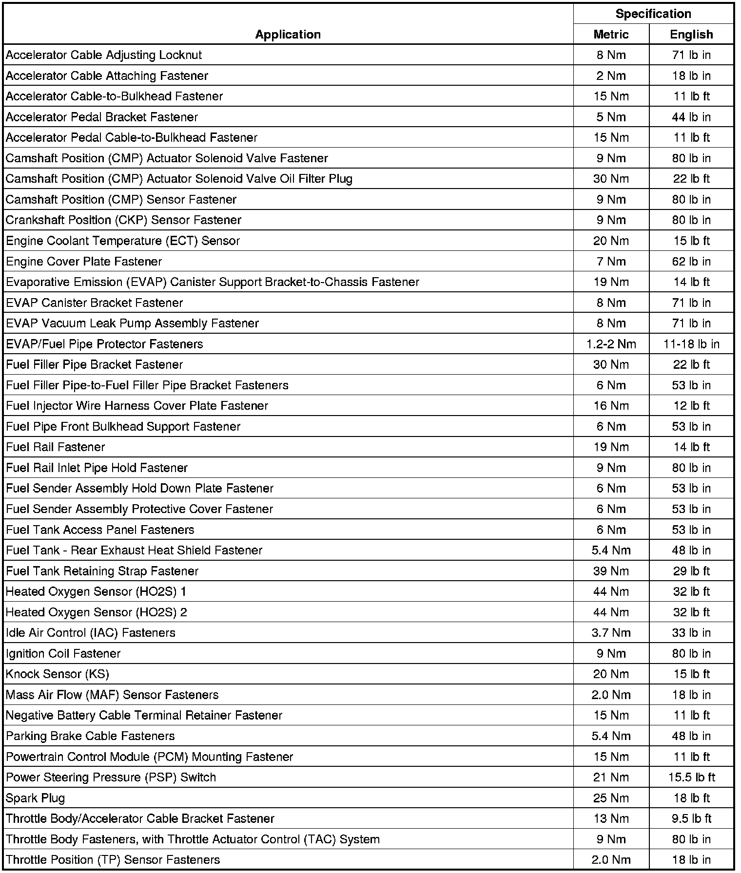 Fastener Tightening Specifications