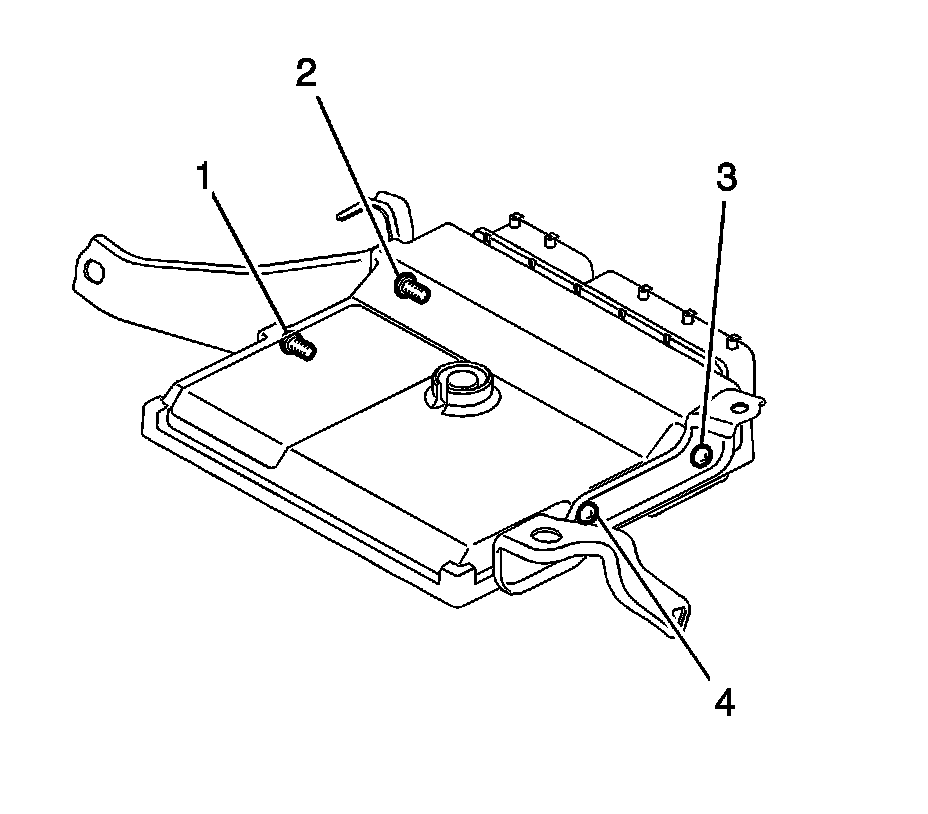 1. Install the 2 ECM brackets onto the ECM with the 4 screws (1, 2, 3, 4) and tighten to 3.2 Nm (28 lb in).