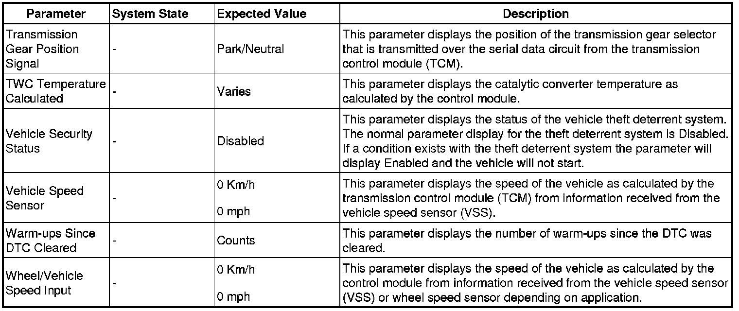 Only the parameters listed below are referenced in this service manual for use in diagnosis.