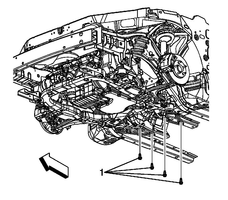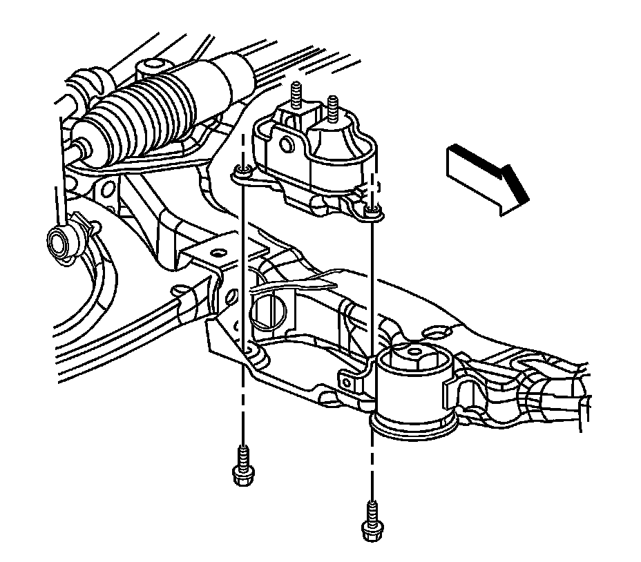 12. Remove the front transmission mount bolt from the frame. Refer to Transmission Front Mount Replacement Transmission Front Mount Replacement.